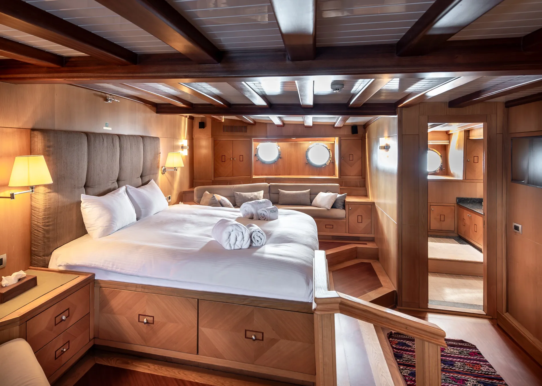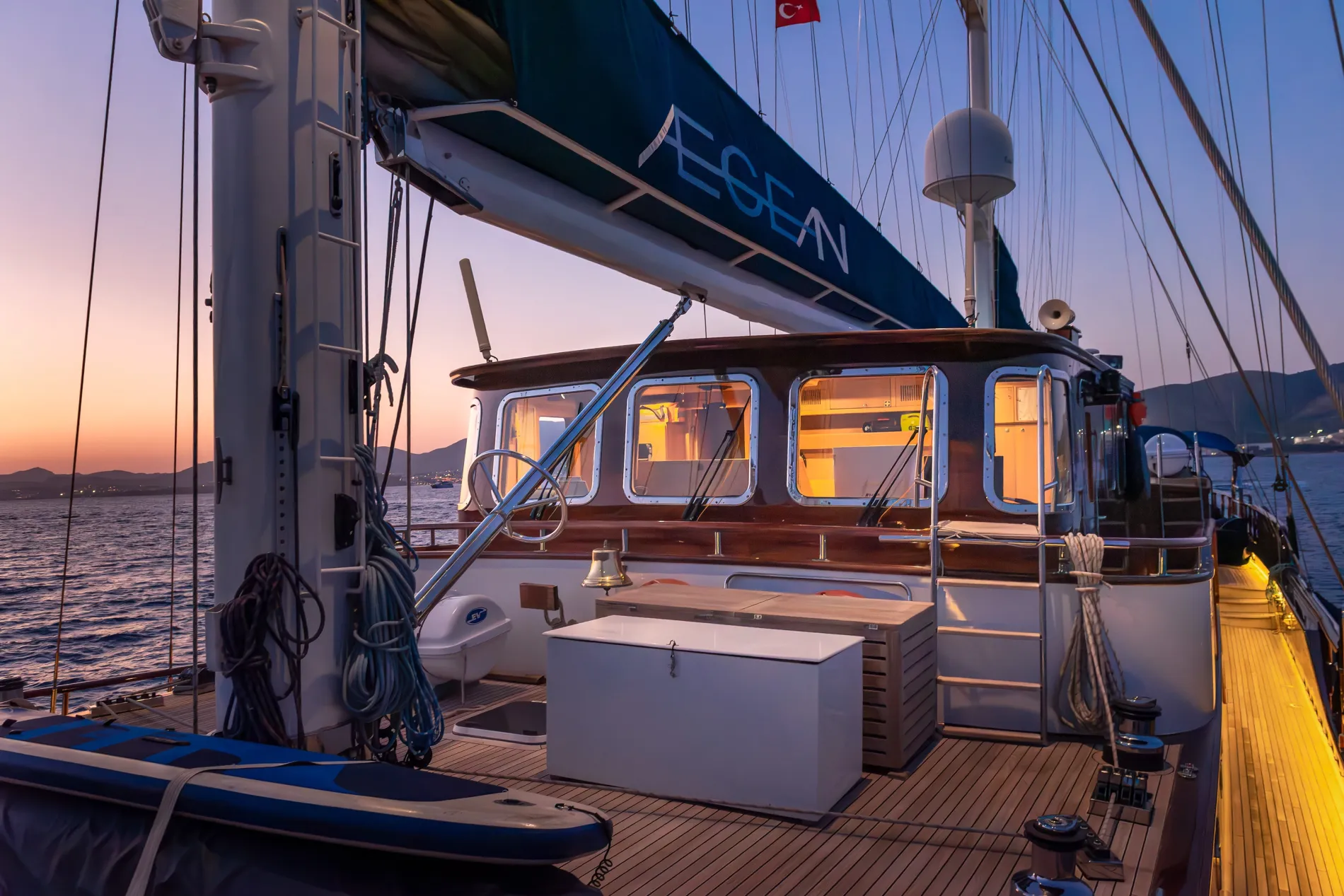 Aegean is a standout gulet, maintained in RINA class and held under the same ownership since launch. Privately registered and cared for by a dedicated full-time crew, she has been preserved to an exceptional standard. Her generous volume, robust construction, and thoughtful layout make her ideally suited for a future charter programme, while her flawless varnished woodwork and Turkish craftsmanship capture the essence of the Eastern Mediterranean lifestyle.