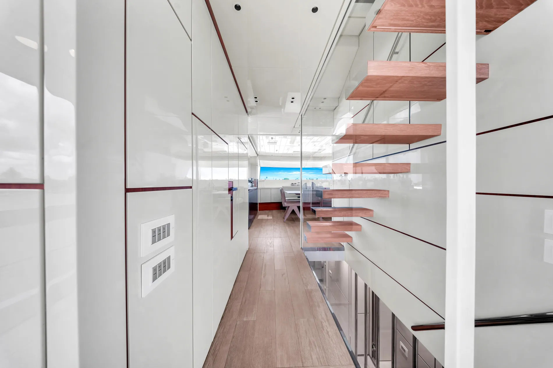 Lissoni & Partners envisioned the SX88 interior as a "floating loft," removing traditional partitions to create a continuous, open-plan main deck framed by near floor-to-ceiling windows.