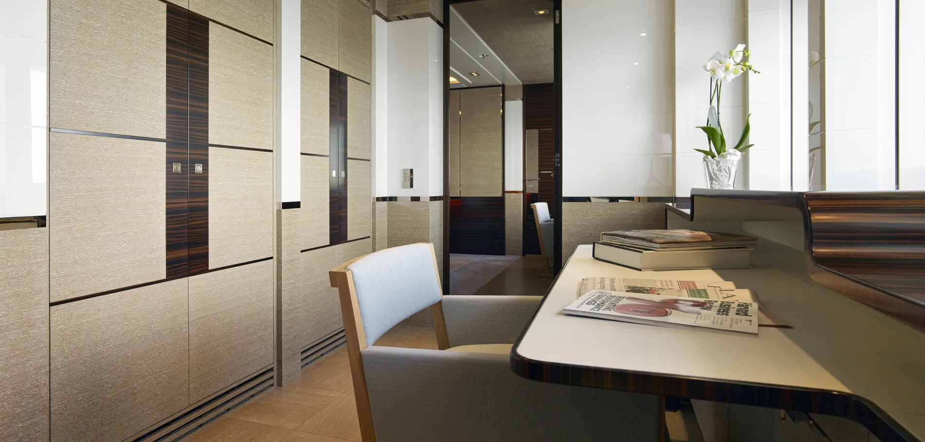 Delivered in 2015 by Heesen Yachts, ASYA is the second yacht in the yard’s restyled 47-metre steel displacement series, one of the most established platforms within the Dutch builder’s fleet. Her exterior bears the signature styling of long-time design partner Frank Laupman of Omega Architects.