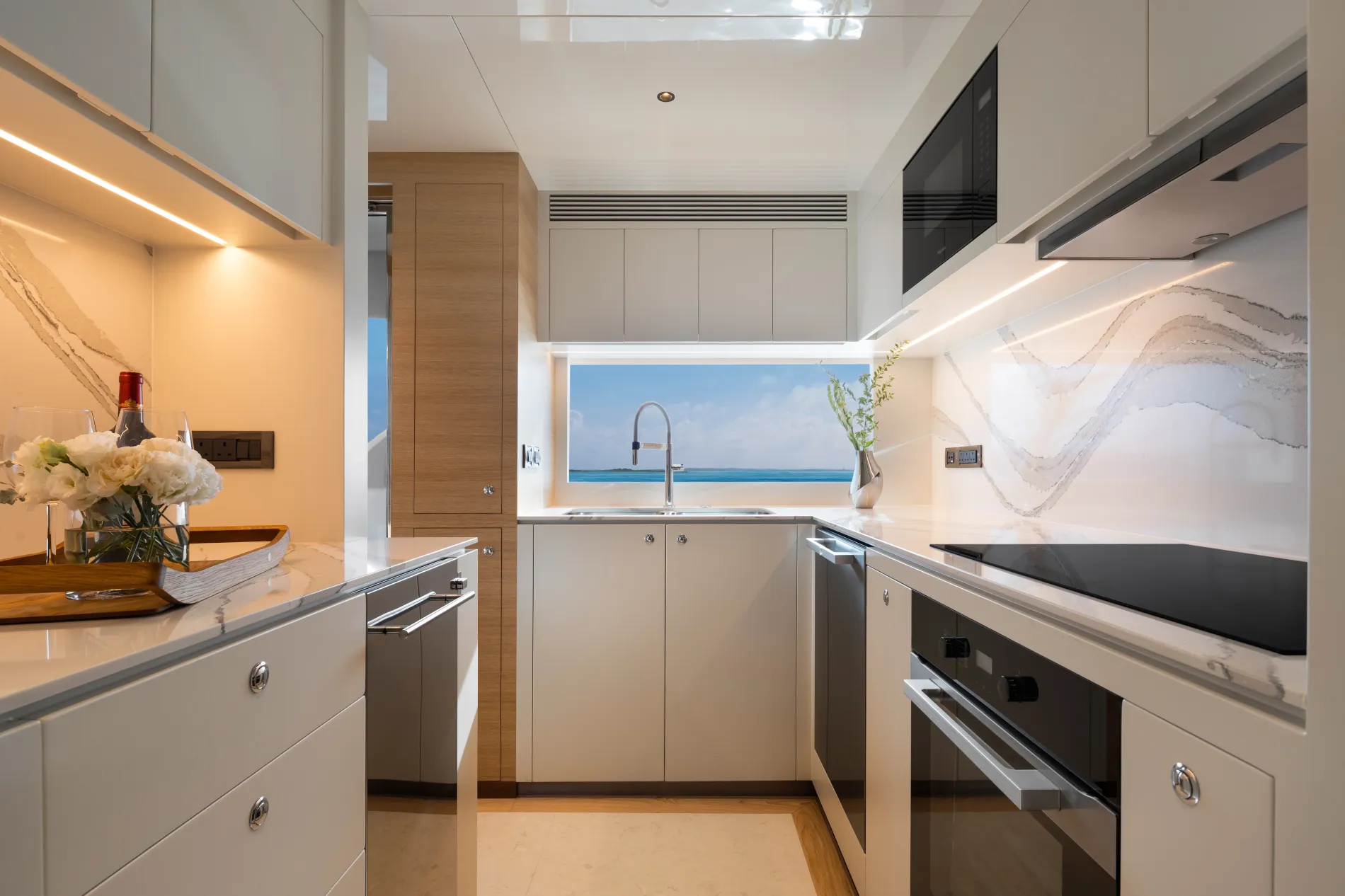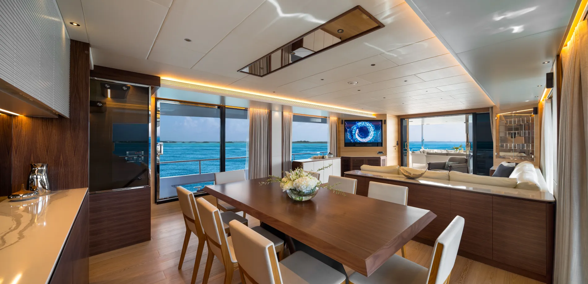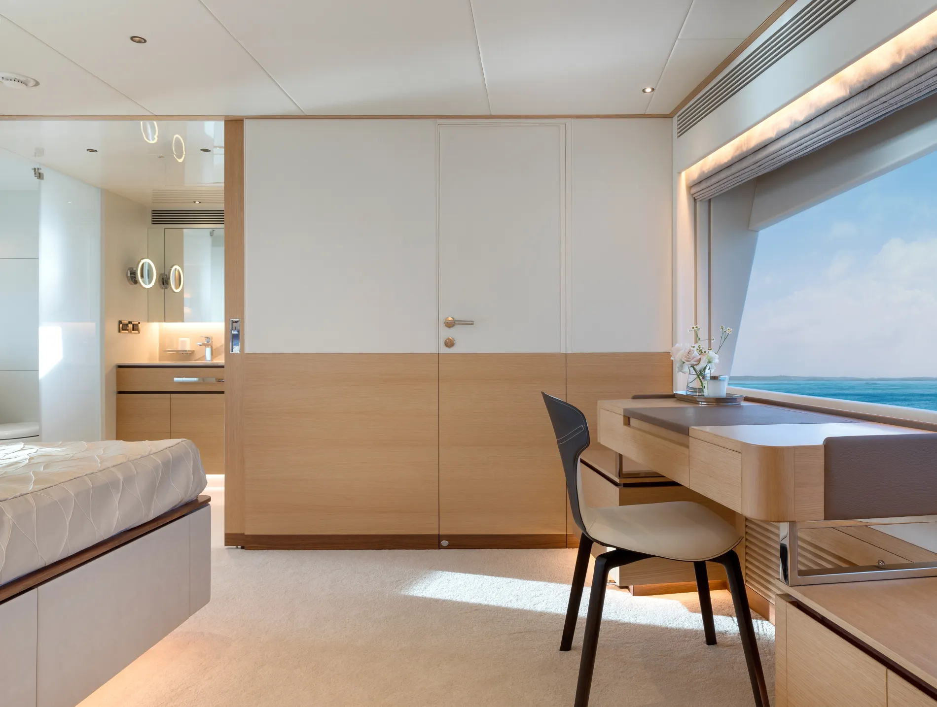 Delivered as Hull 20 of the highly successful Horizon FD90 series, Aveline offers a rare blend of volume and long-range capability in a sub-30m yacht. Meticulously maintained by her original owner, she is fitted with enlarged fuel and water tanks and efficient engines, still under warranty, giving her a range of more than 3,000nm.