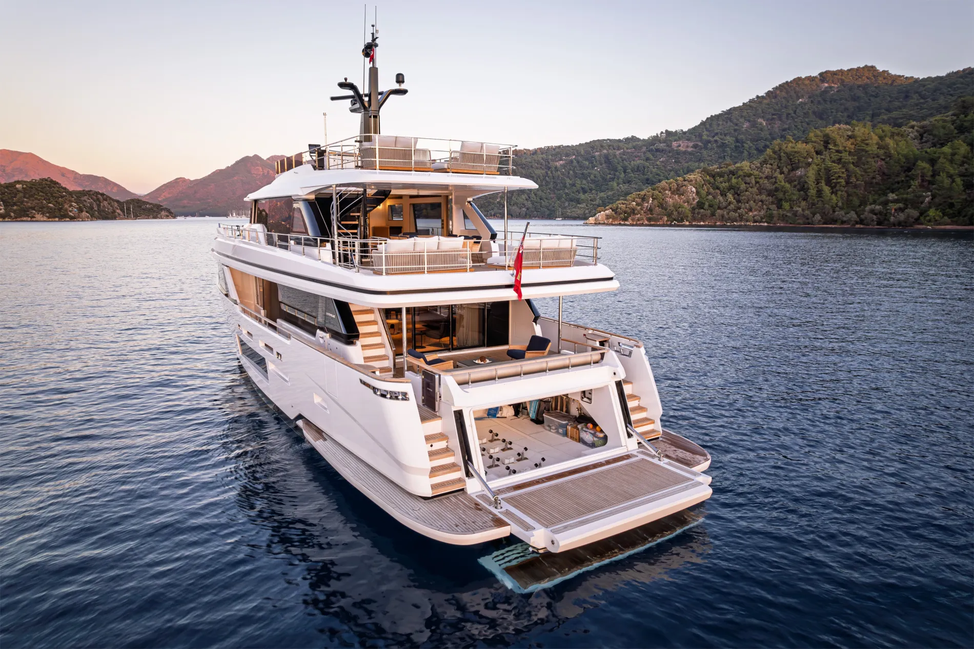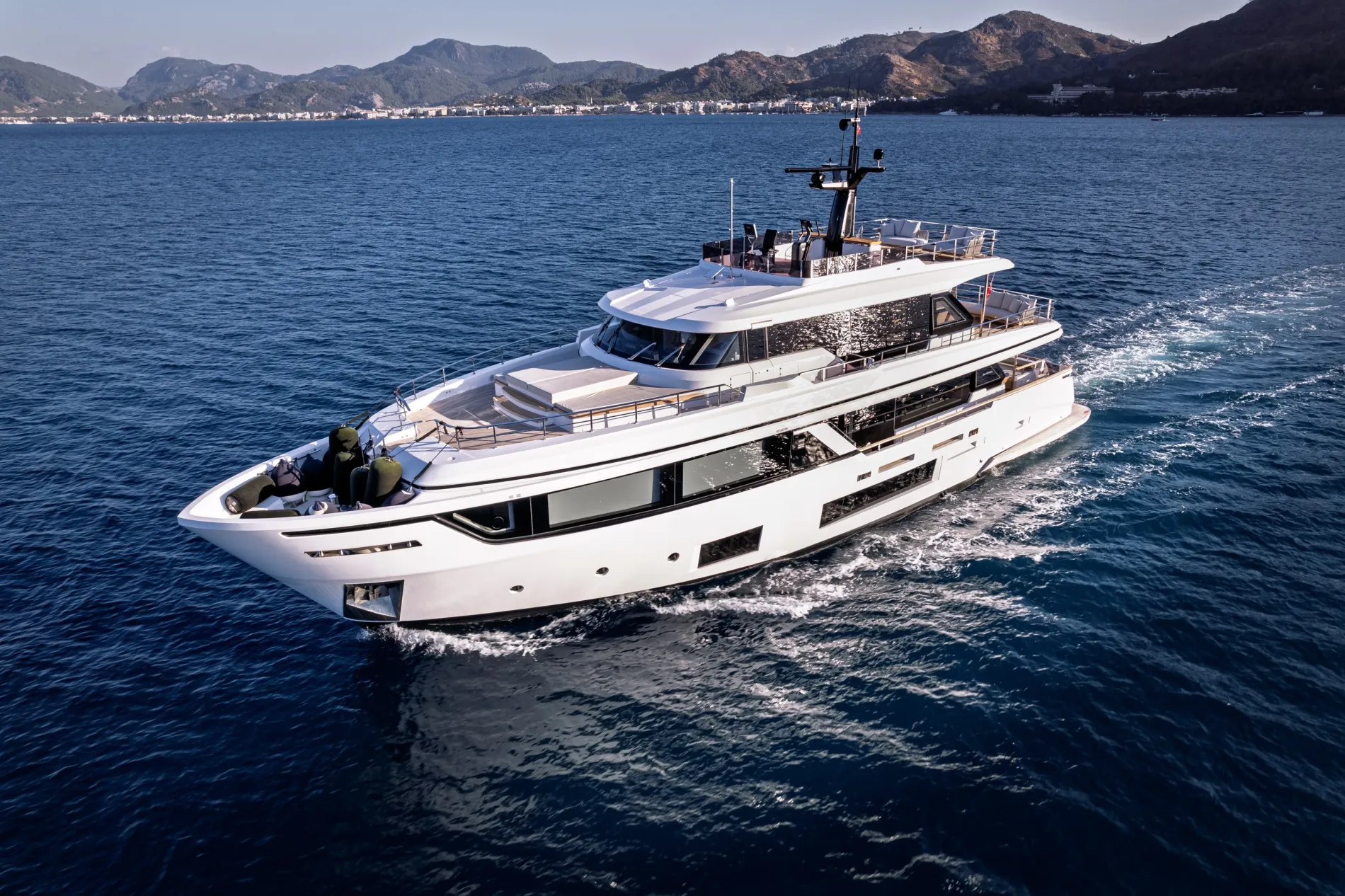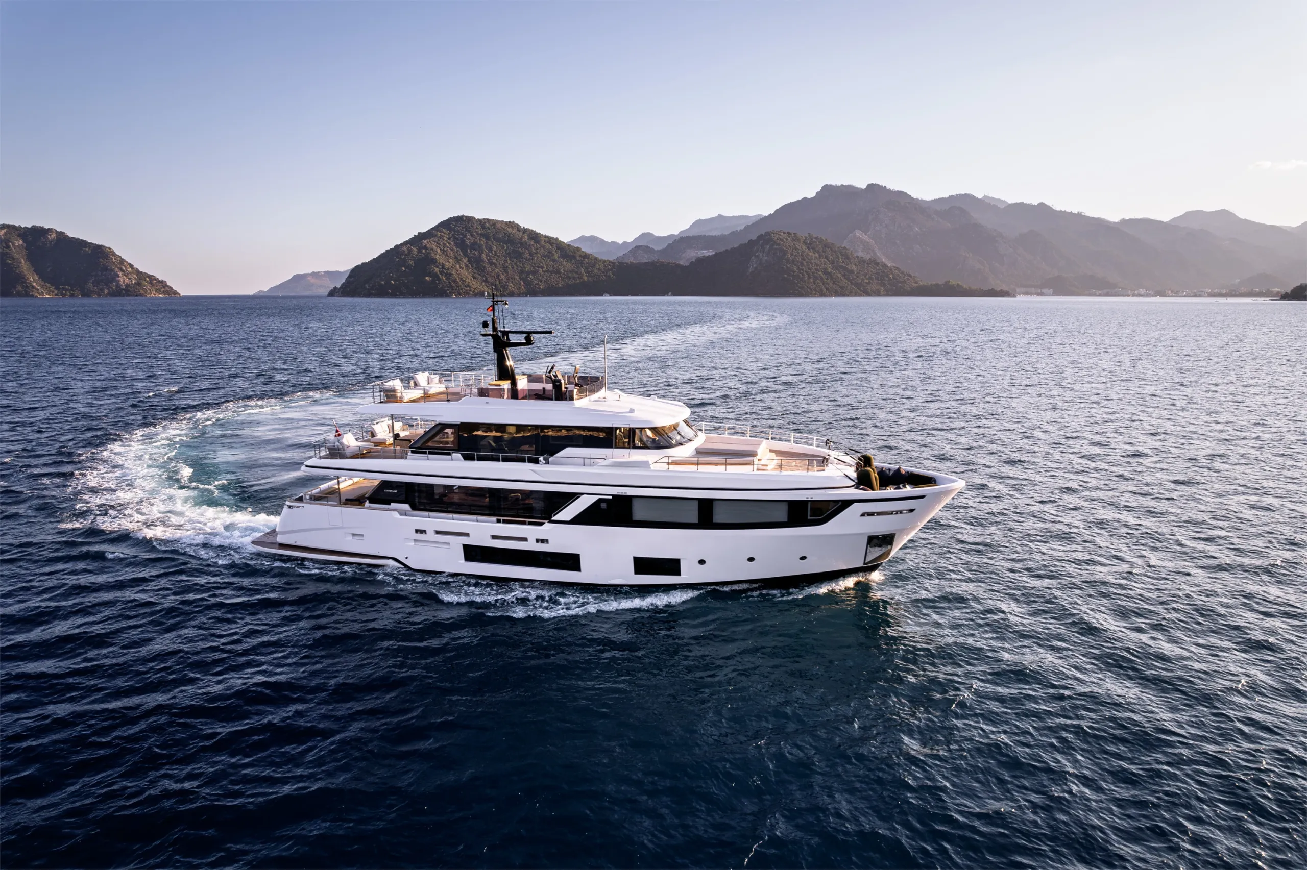 Belle Ile is a 28.43-metre semi-custom motor yacht, and the twelfth hull of the Custom Line Navetta 30 series. Offered for sale in pristine condition, she is one of the most attractive yachts in her class, equipped with all top options and boasting impressive interior volume for a 90-foot yacht.