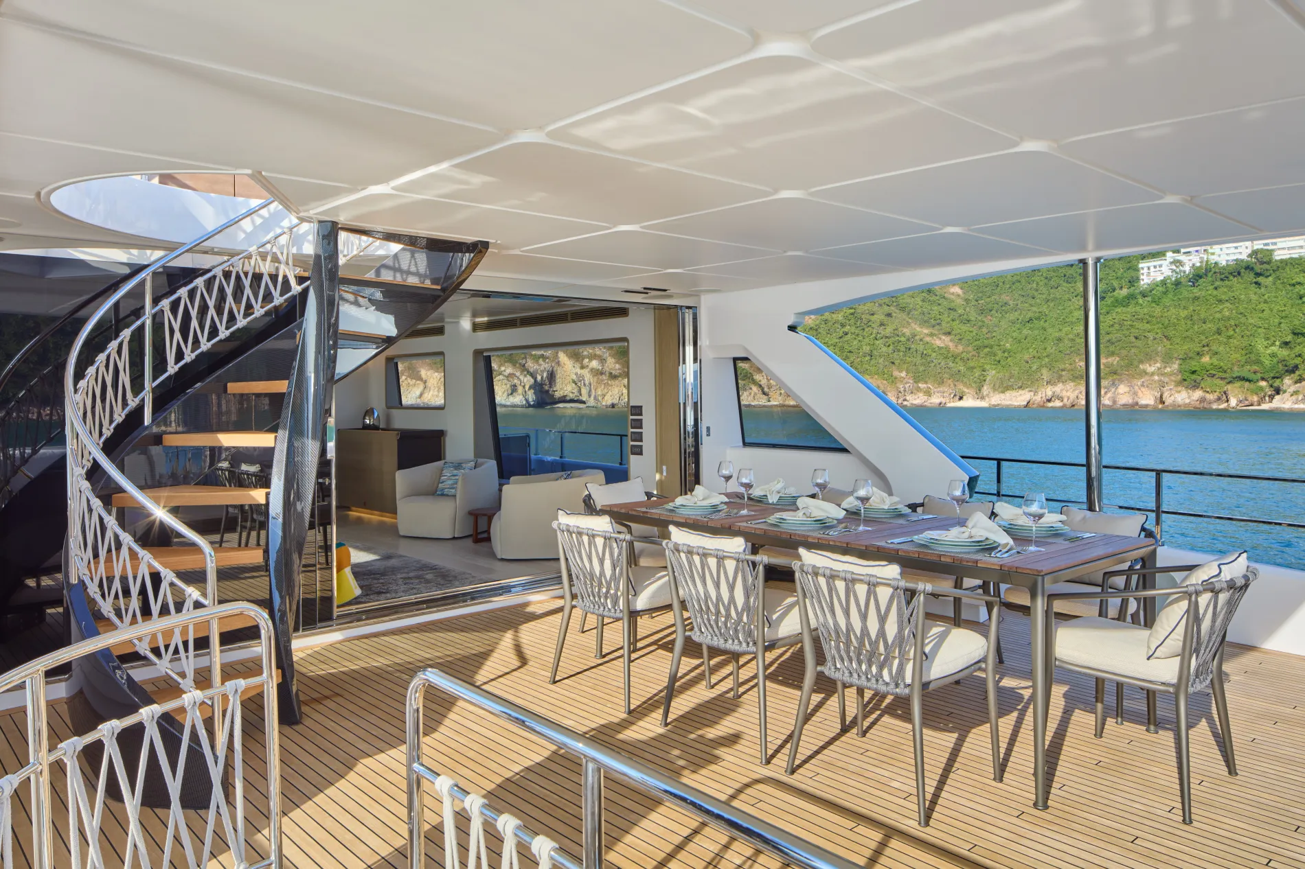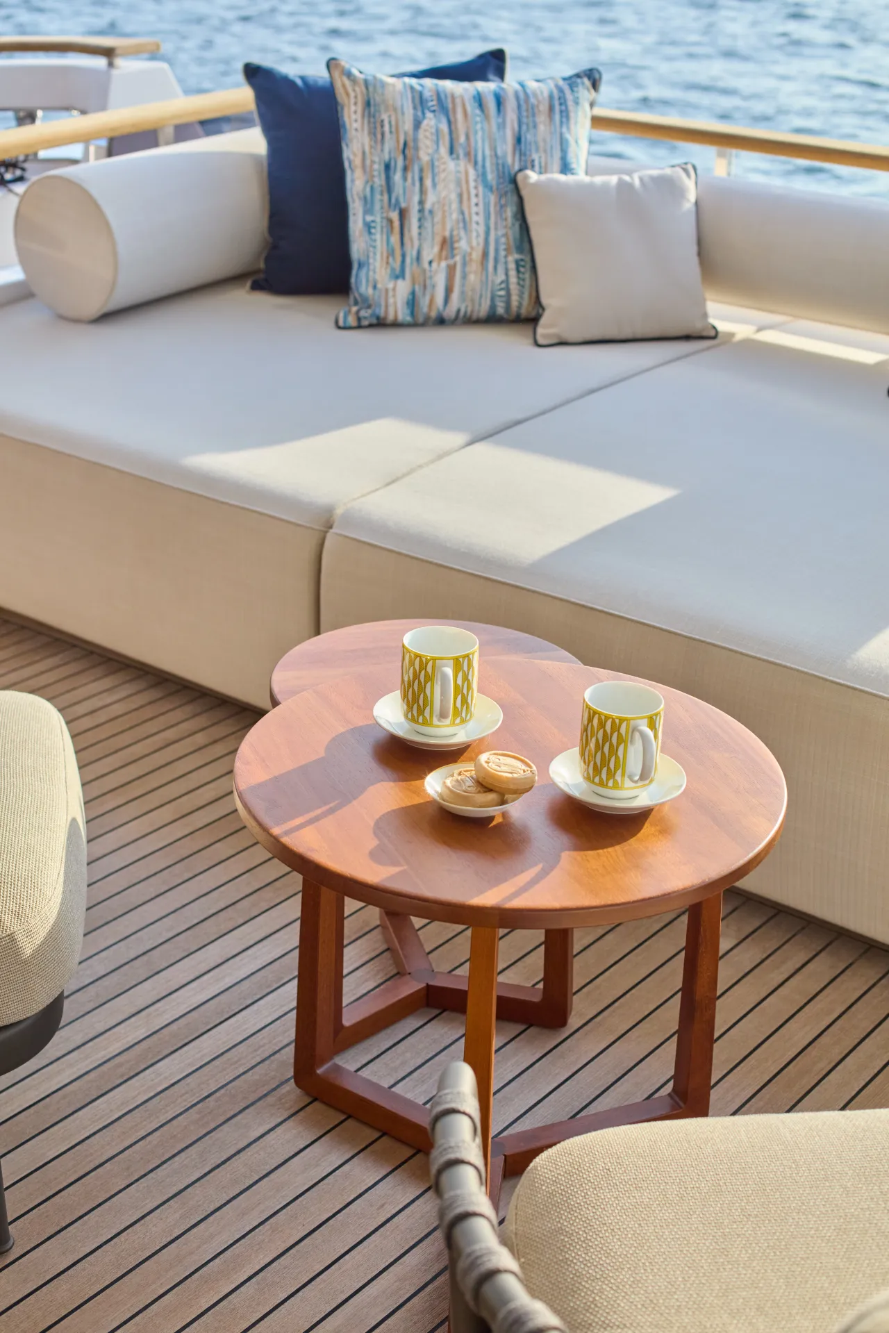 Daydream is the fifth hull in the Custom Line Navetta 30 series and carries one of the most extensive options packages across her technical and guest spaces. The model is highly sought after in the sub-30-metre range for its generous volume, and Daydream underscores that appeal with minimal use and near-new presentation.