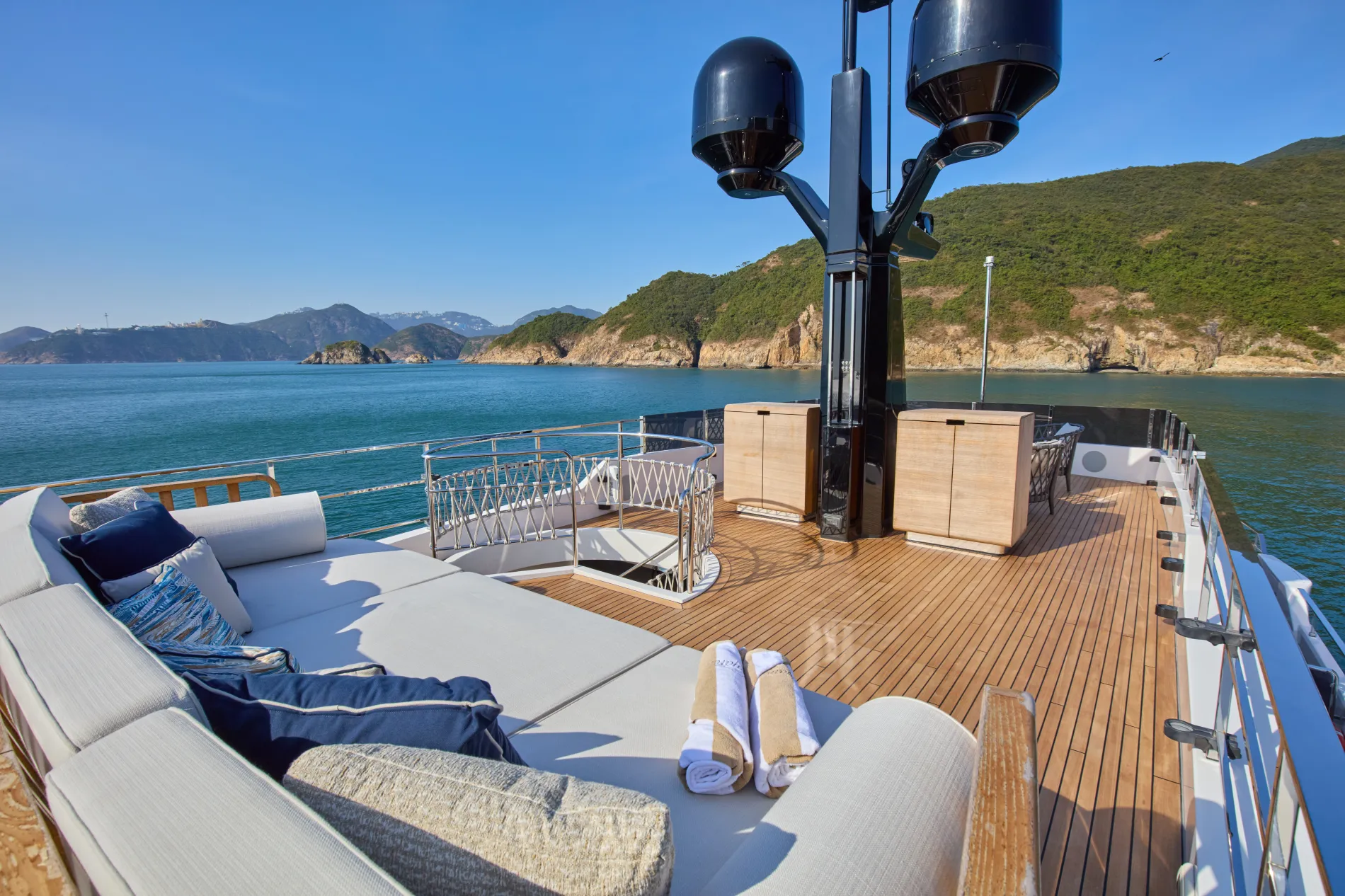 Above it all, the sundeck remains a private retreat and, much like other areas on board, can be reconfigured to suit individual preferences.