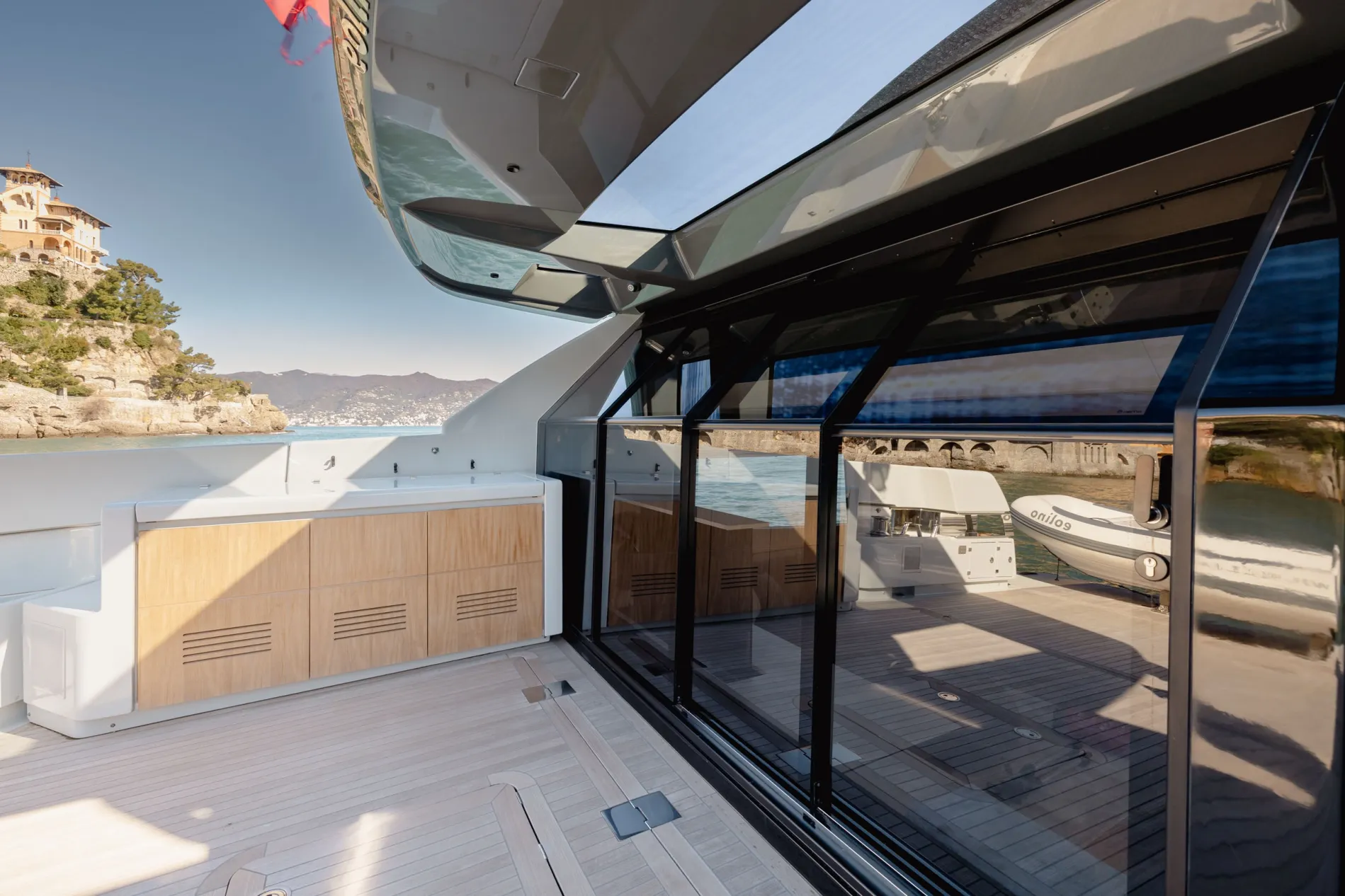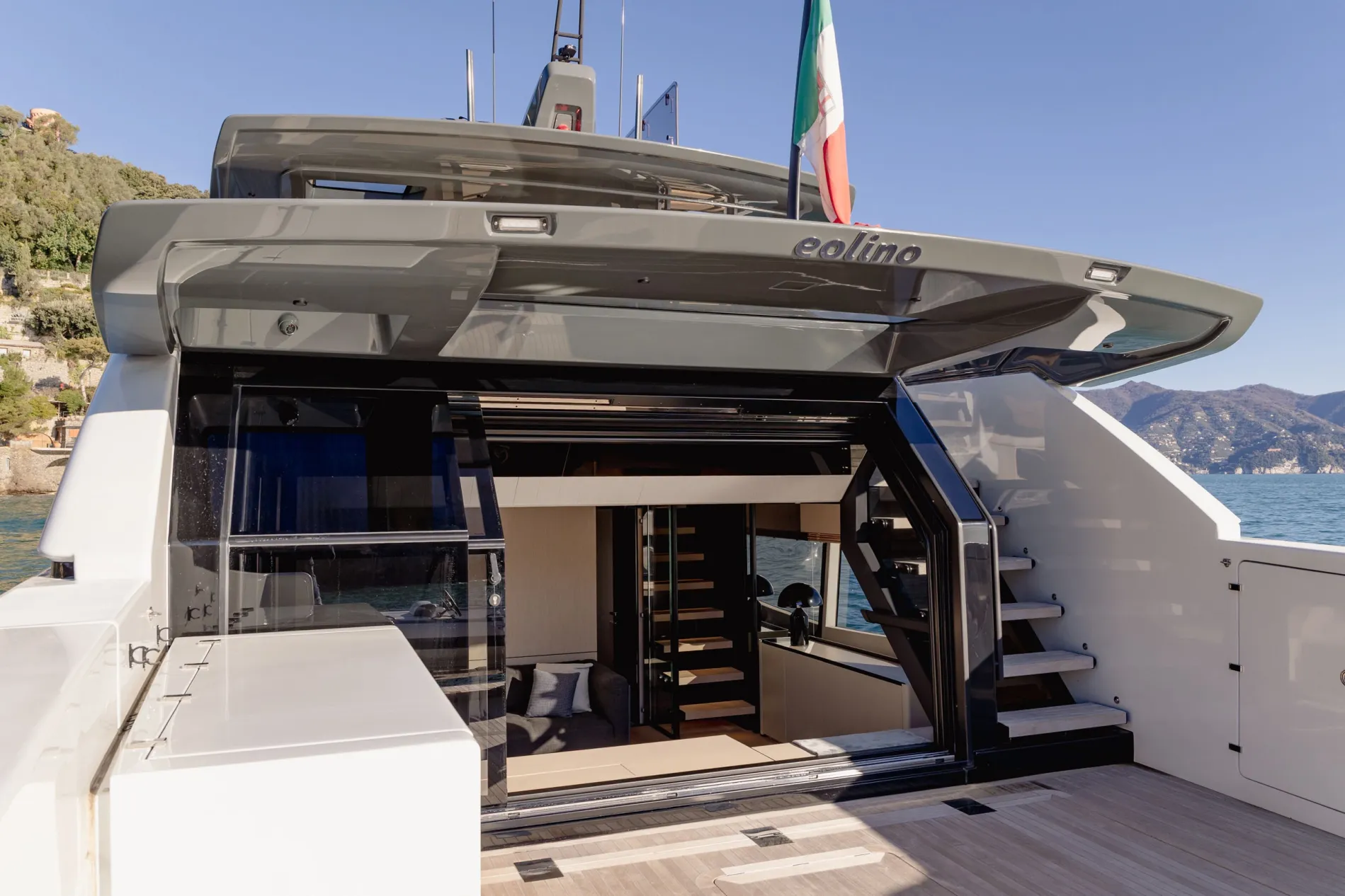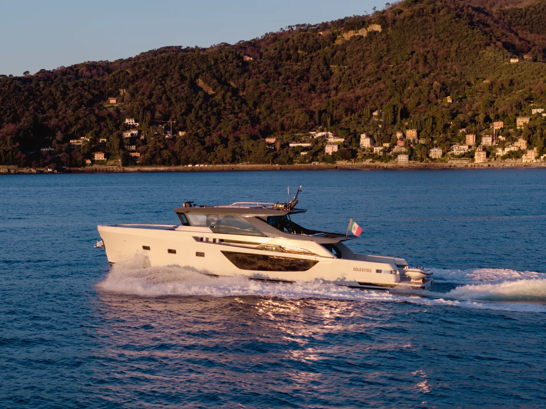Eolino is a 2023 Bluegame BGX73 delivered as one of the highest specified examples from the yard. The model set a benchmark in the sub-24-metre segment, placing connection to the sea and internal volume at the forefront of a fast, practical platform. With an extensive list of technical upgrades, VAT paid status and light use since delivery, she stands ready for immediate cruising.