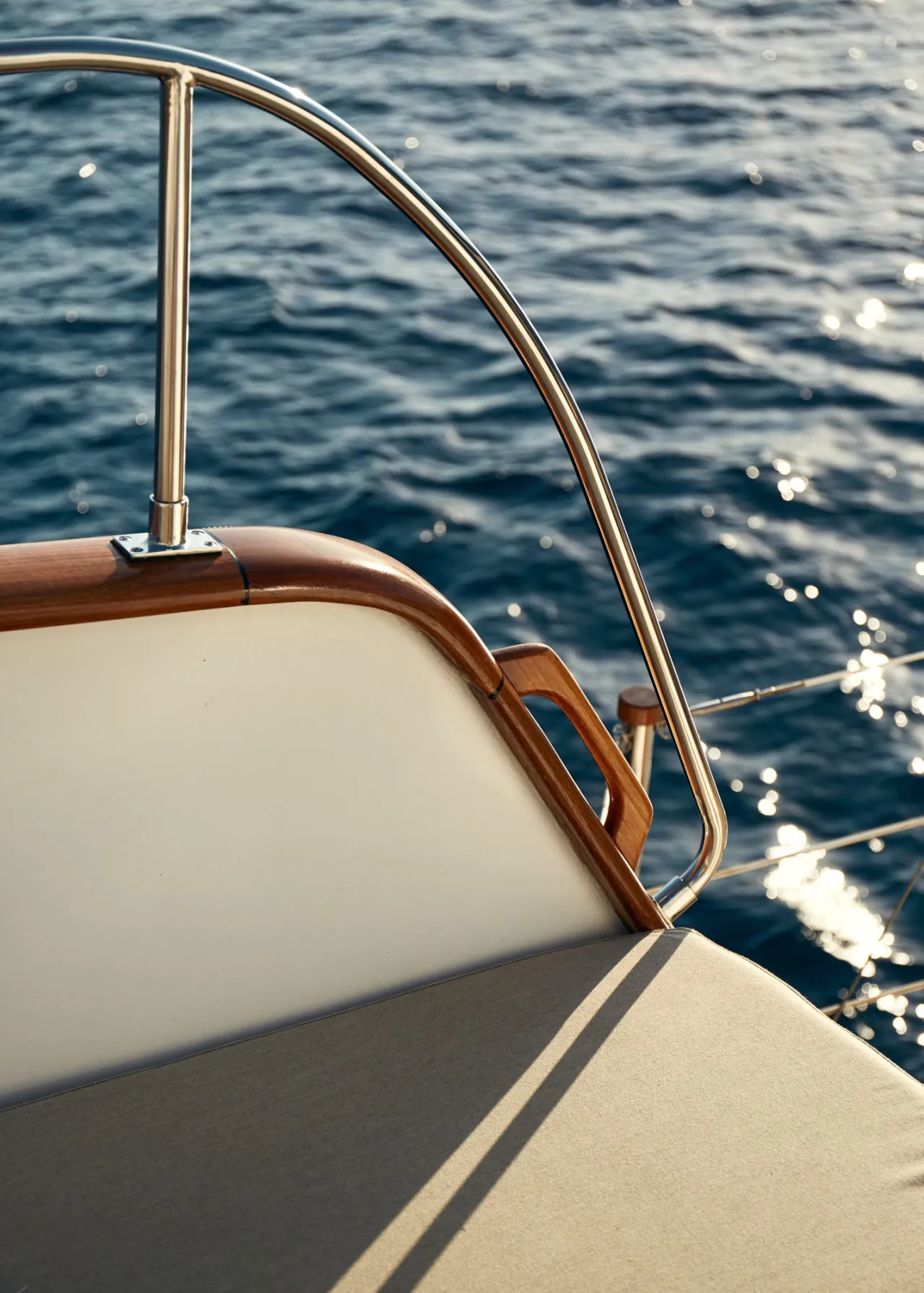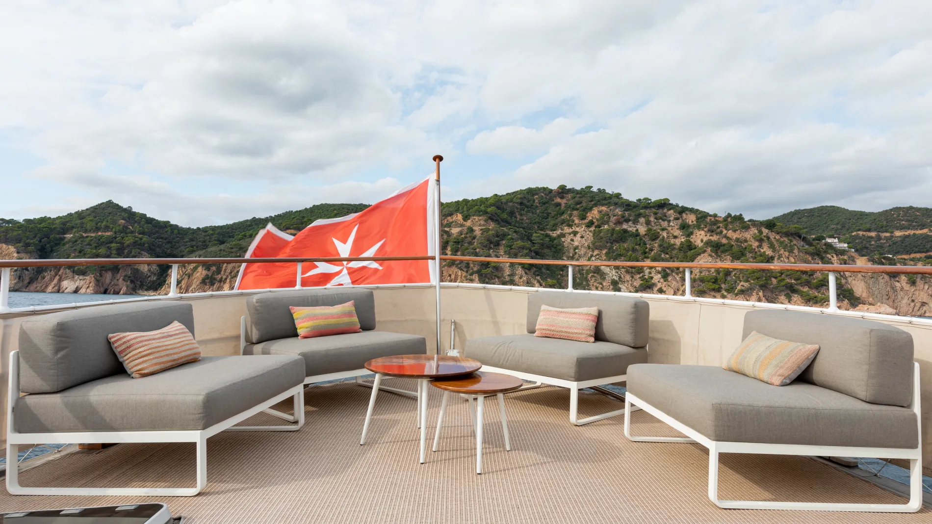 An intimate lounge setting nestled into the bow.