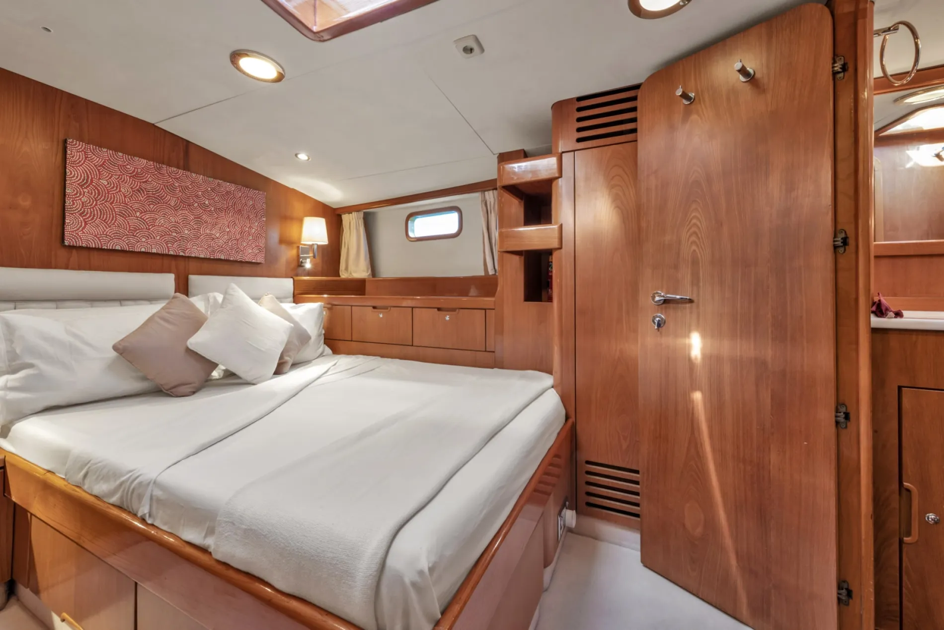 Georgiana accommodates up to six guests in a three-cabin layout, with a spacious owner’s cabin and two twin guest cabins.