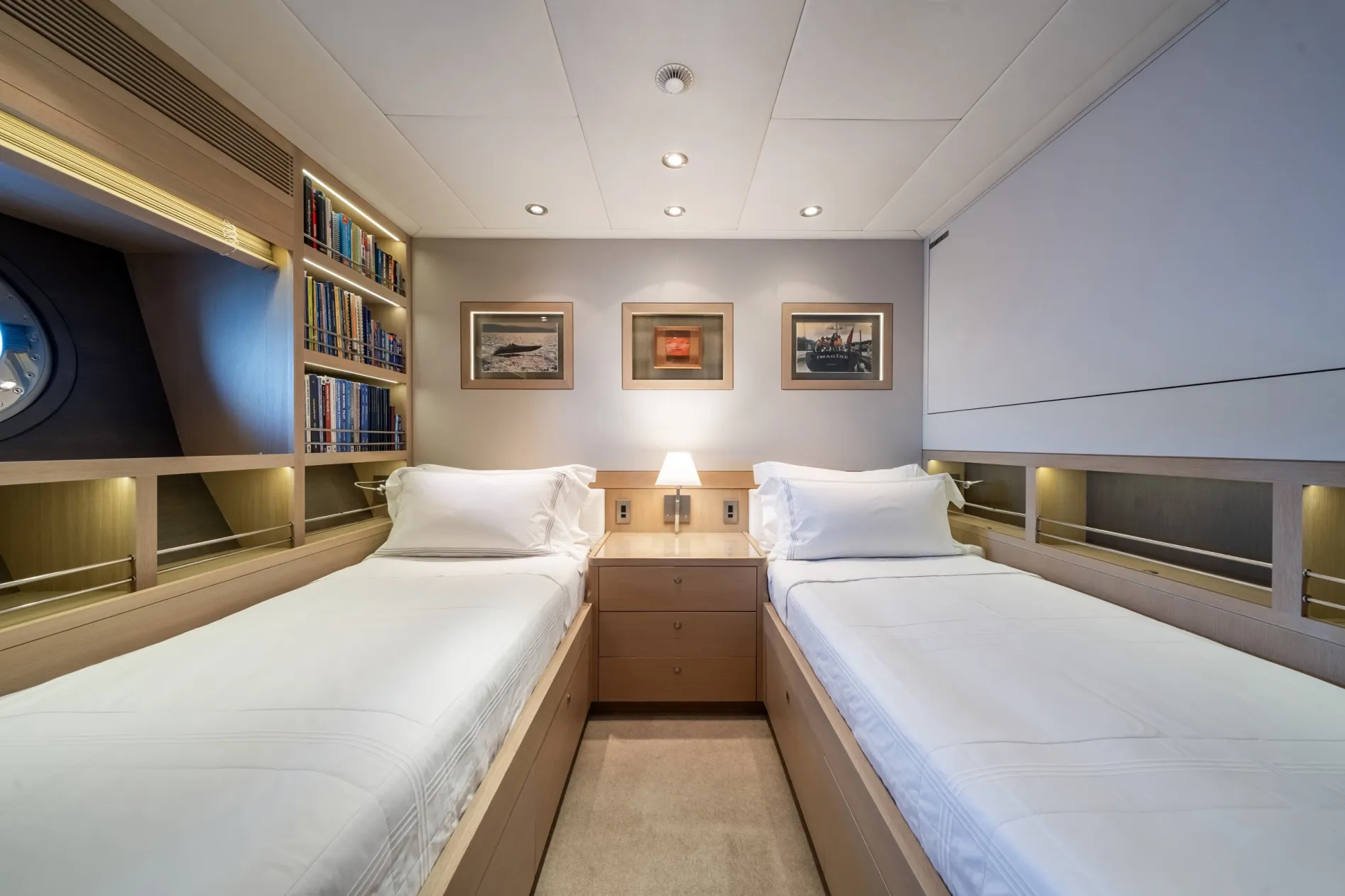 The twin cabin features an additional Pullman berth to increase capacity for family or guests.