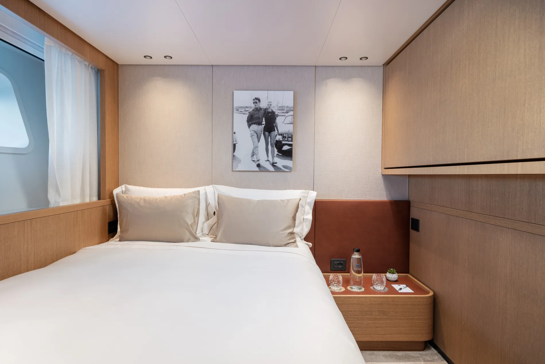 Invictus accommodates 10 guests across five cabins, combining privacy with flexibility. A main deck master provides a tranquil retreat, while the lower deck cabins offer adaptable configurations.