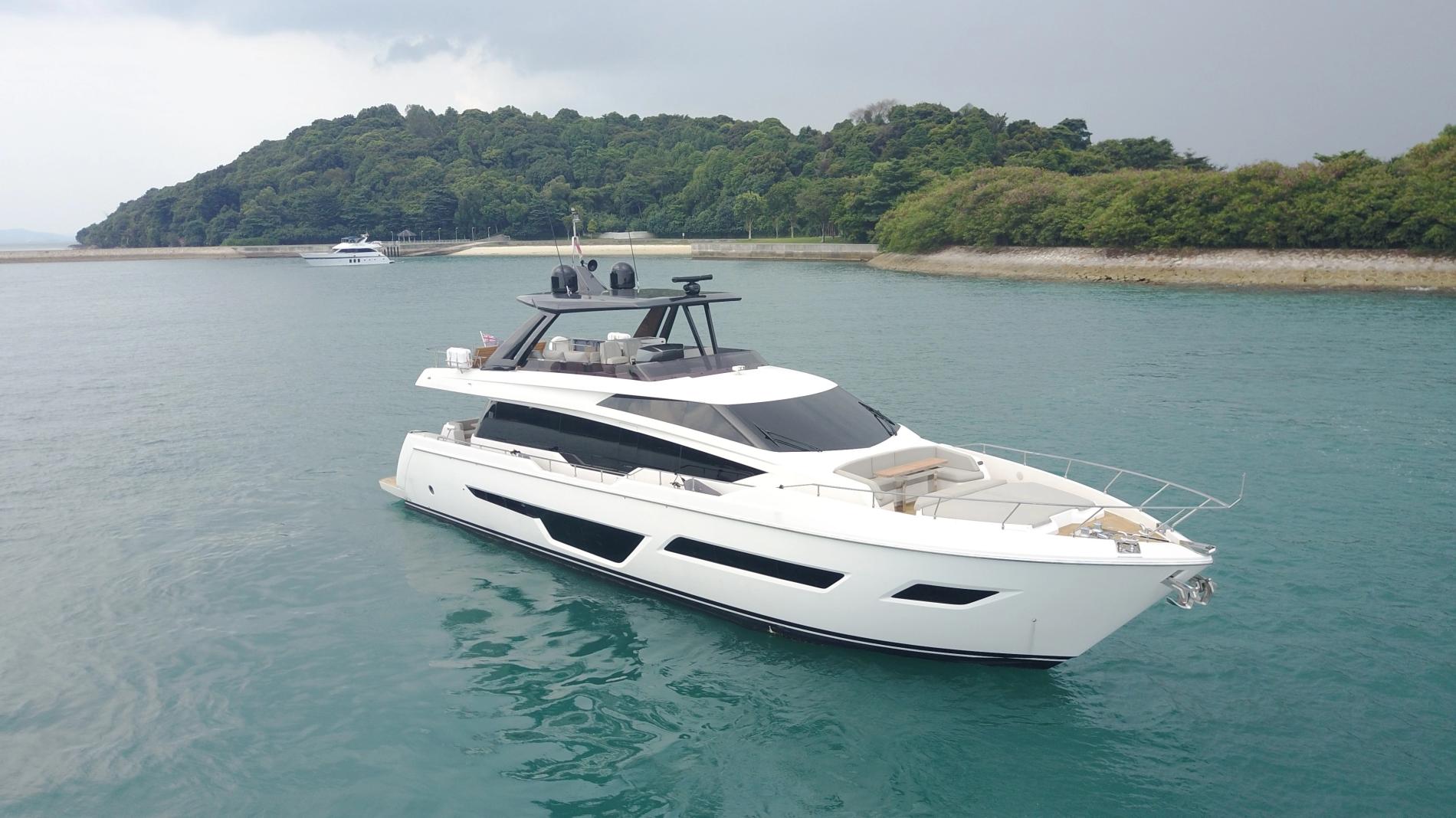 Delivered in 2021 and privately used since, the Ferretti 780 Joyous Journey blends the presence of a 30m yacht into a nimble sub-25m frame. Lightly run with low hours, immaculately kept, and turnkey ready, she offers near-new condition with the ease of immediate delivery.