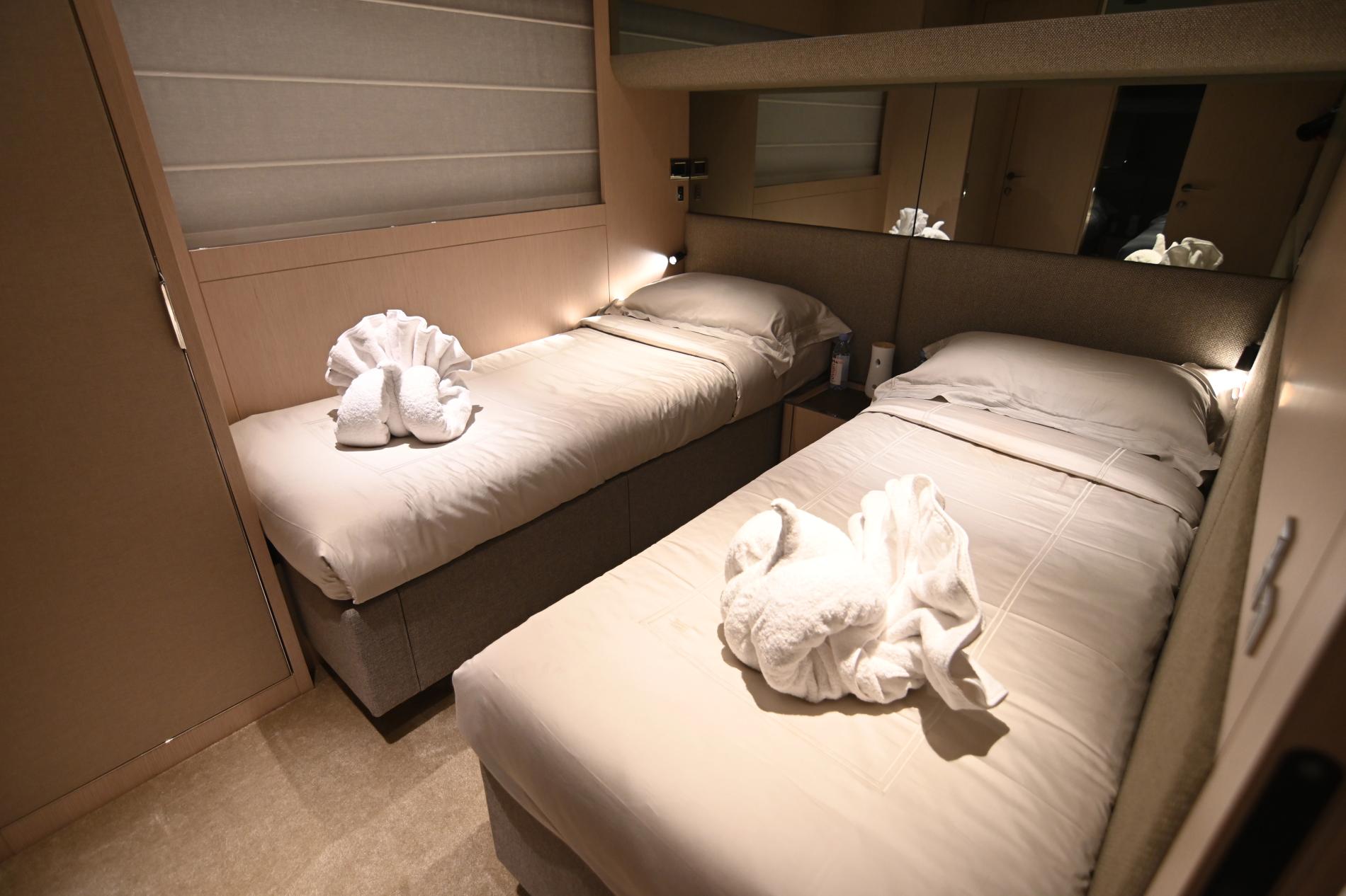 Joyous Journey redefines the 78-foot category with sleek Italian design, a four-cabin layout, and generous outdoor decks ideal for entertaining. Perfect for both weekend escapes and longer cruises, she offers an effortless blend of joy, style, and performance.