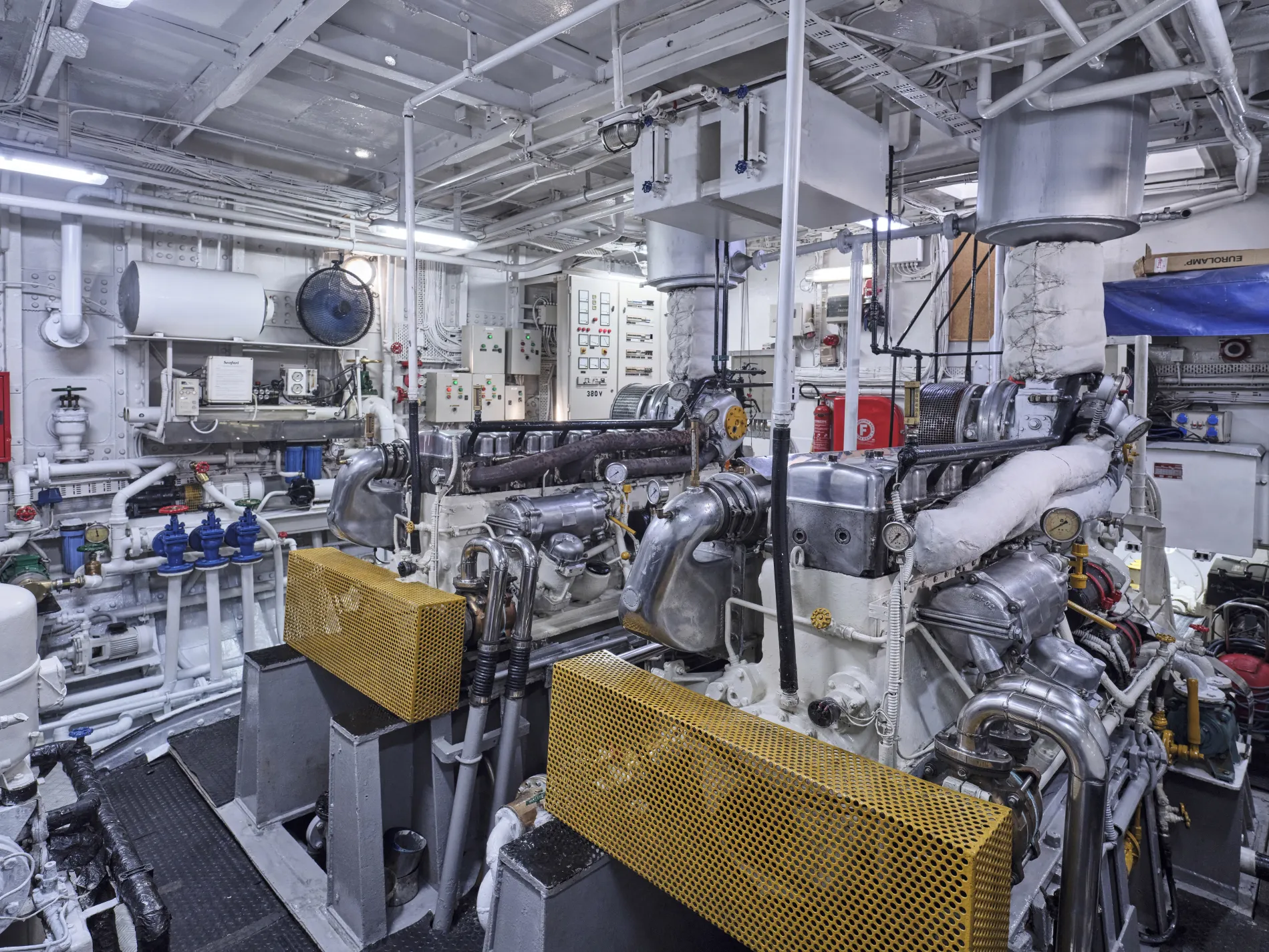 Replaced during her 2003–2006 refit with twin Mercedes units and kept in full working order through regular care.