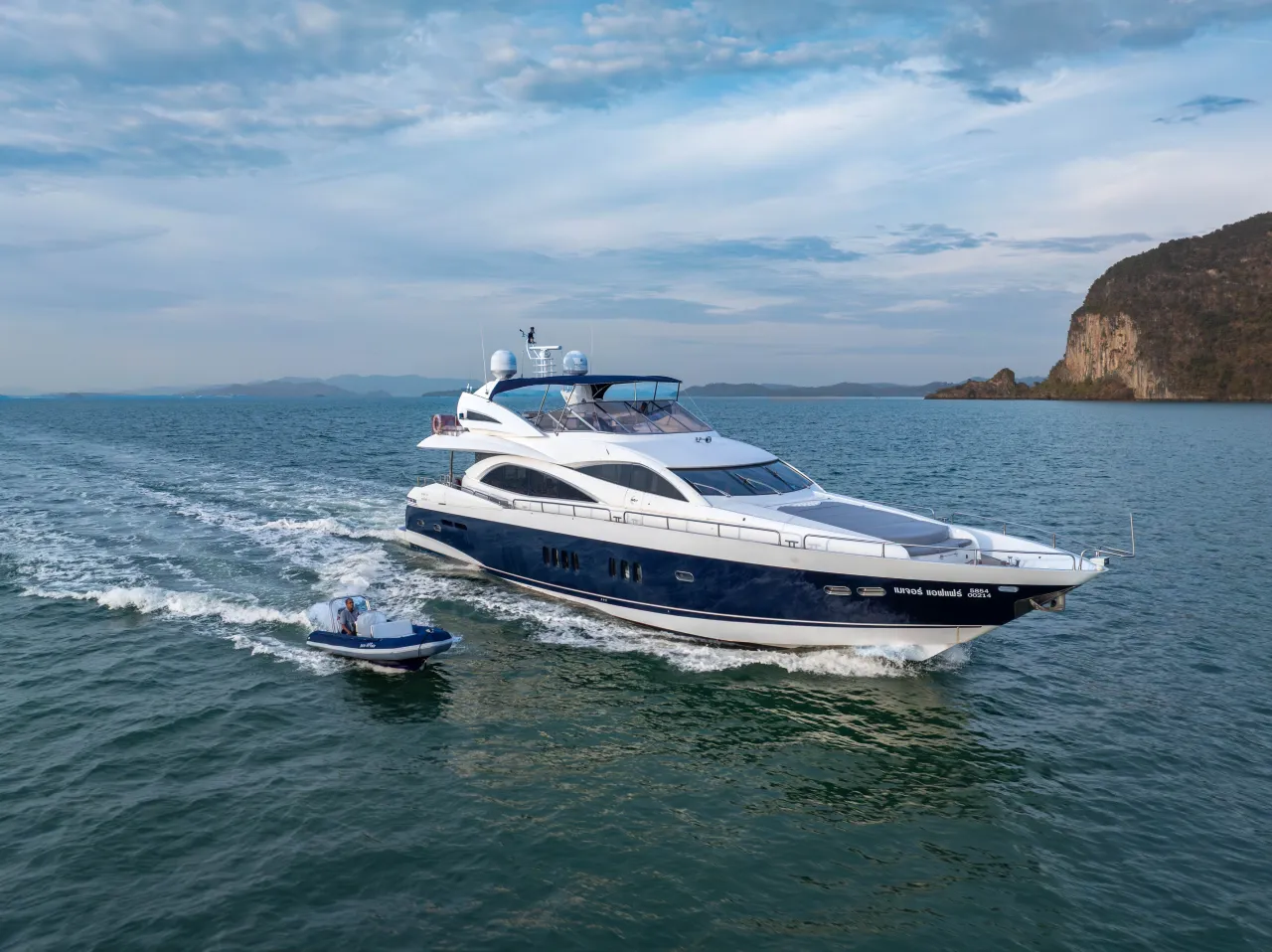 Major Affair is built around usable deck space, with a protected cockpit, broad side decks, a simple foredeck arrangement and a large flybridge that adds real entertaining capacity.