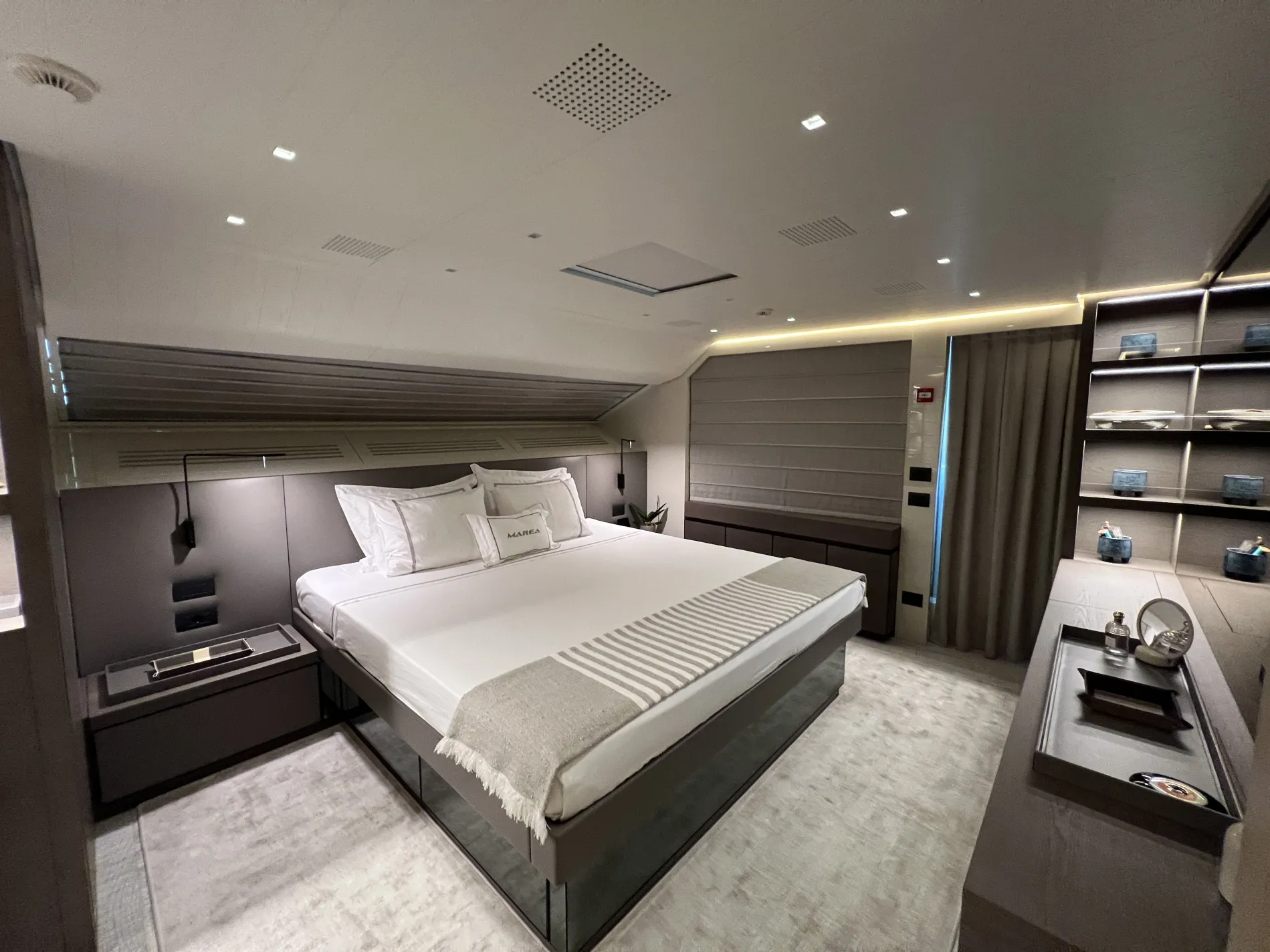 Powered by twin MTUs, Marea combines speed and stability, reaching 27 knots with comfort at anchor ensured by fin stabilisers.