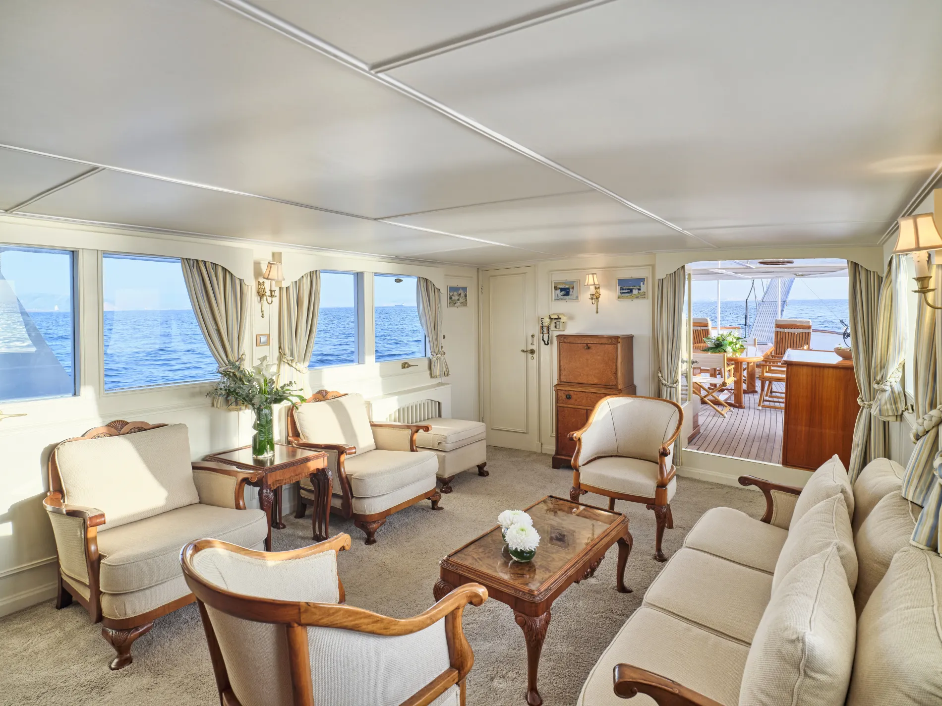 An observation lounge has been converted into a double cabin with direct access to the sun deck.