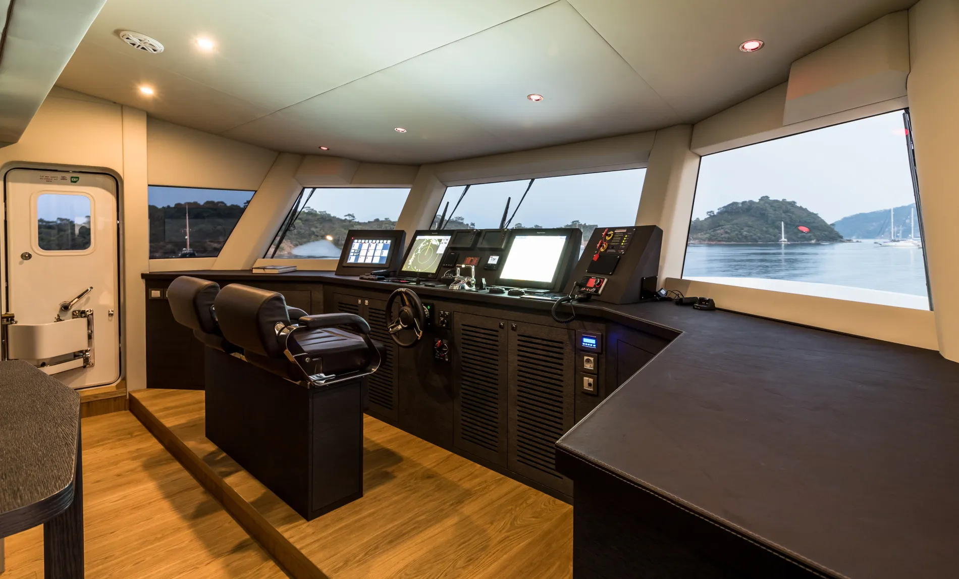 The 32XP series is equipped for extended cruising with ample storage, a 2.5-ton crane for launching a 9-metre RIB and PWCs, and well-planned crew spaces that include a dedicated captain’s cabin.