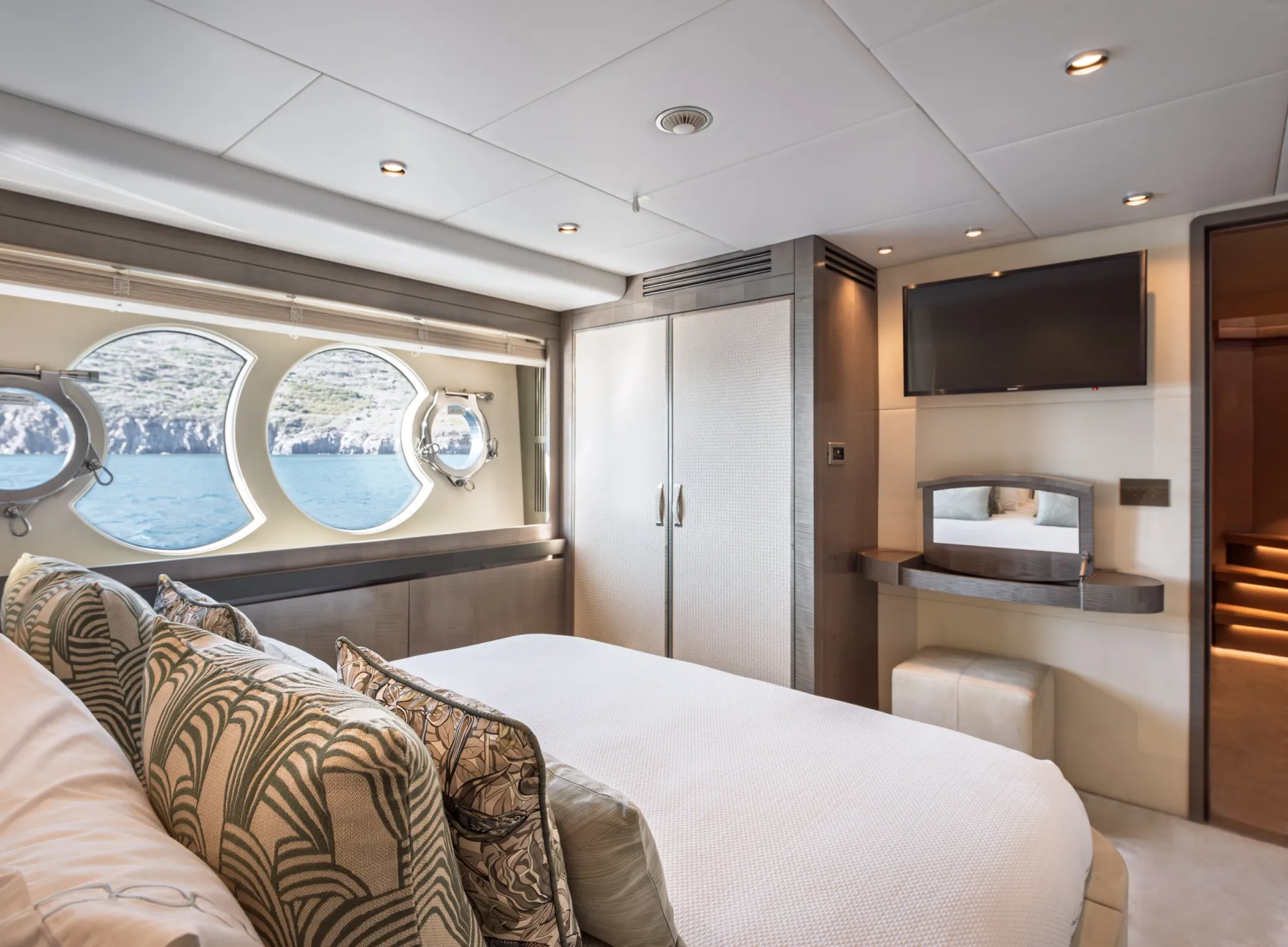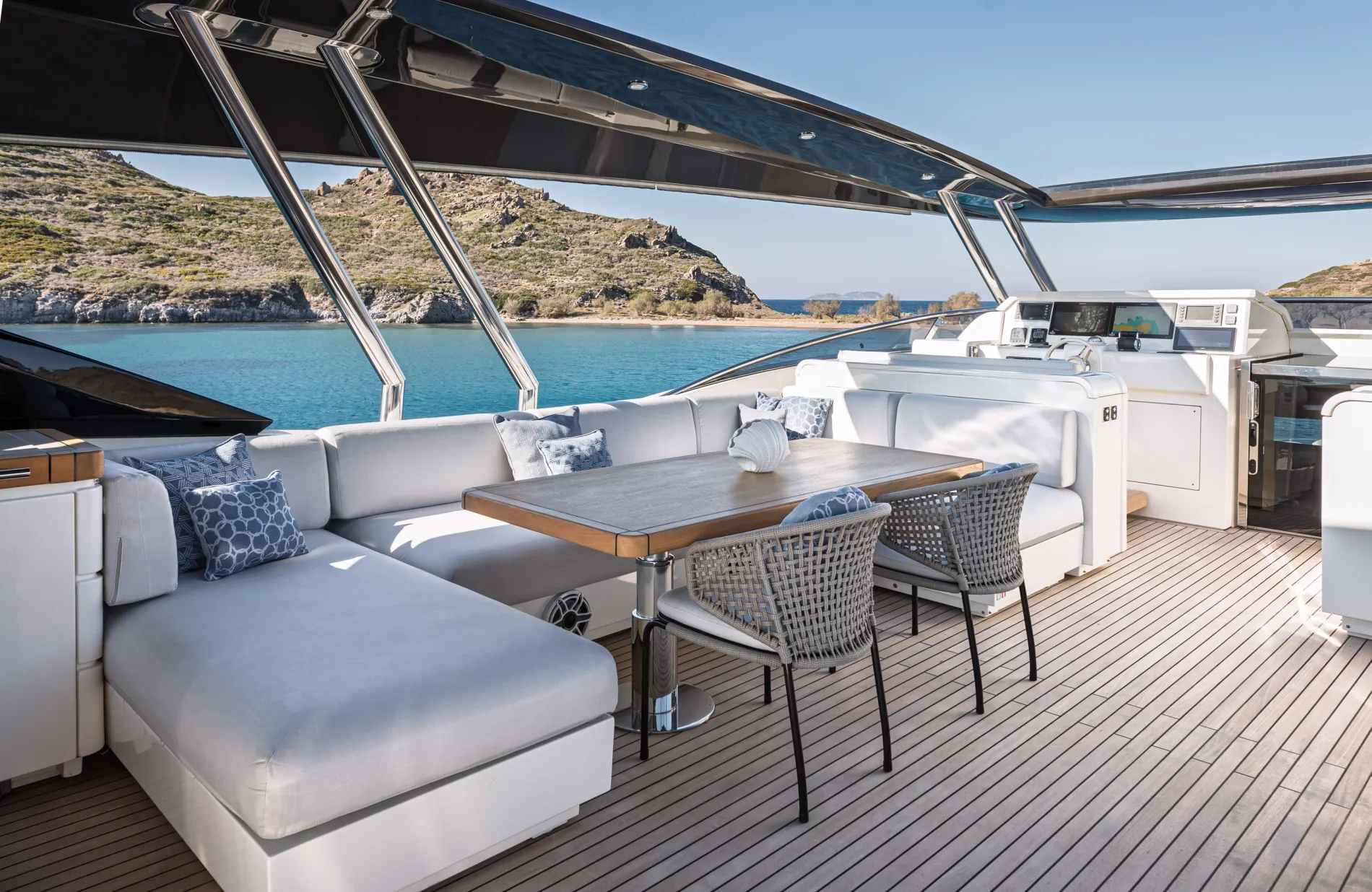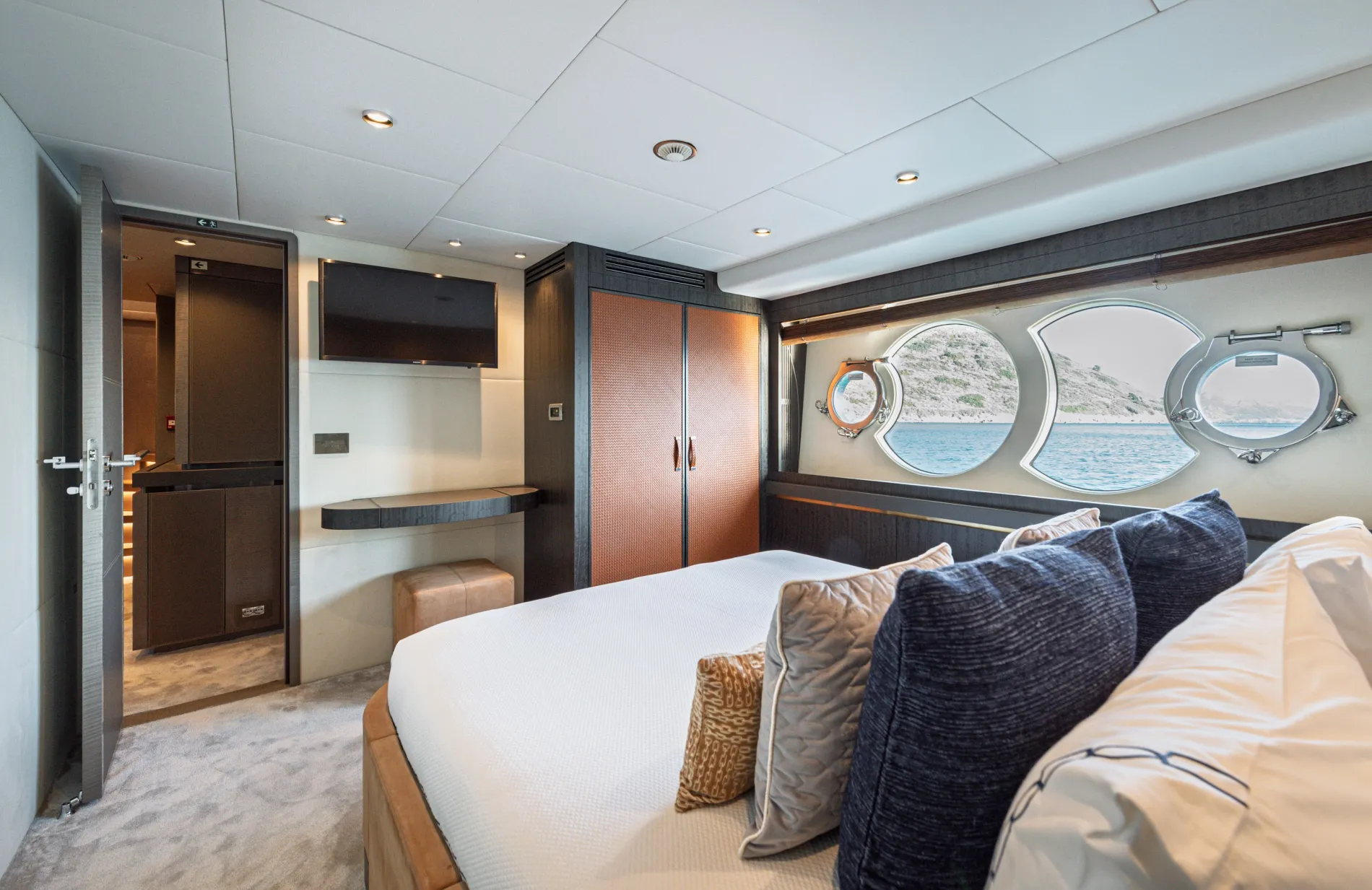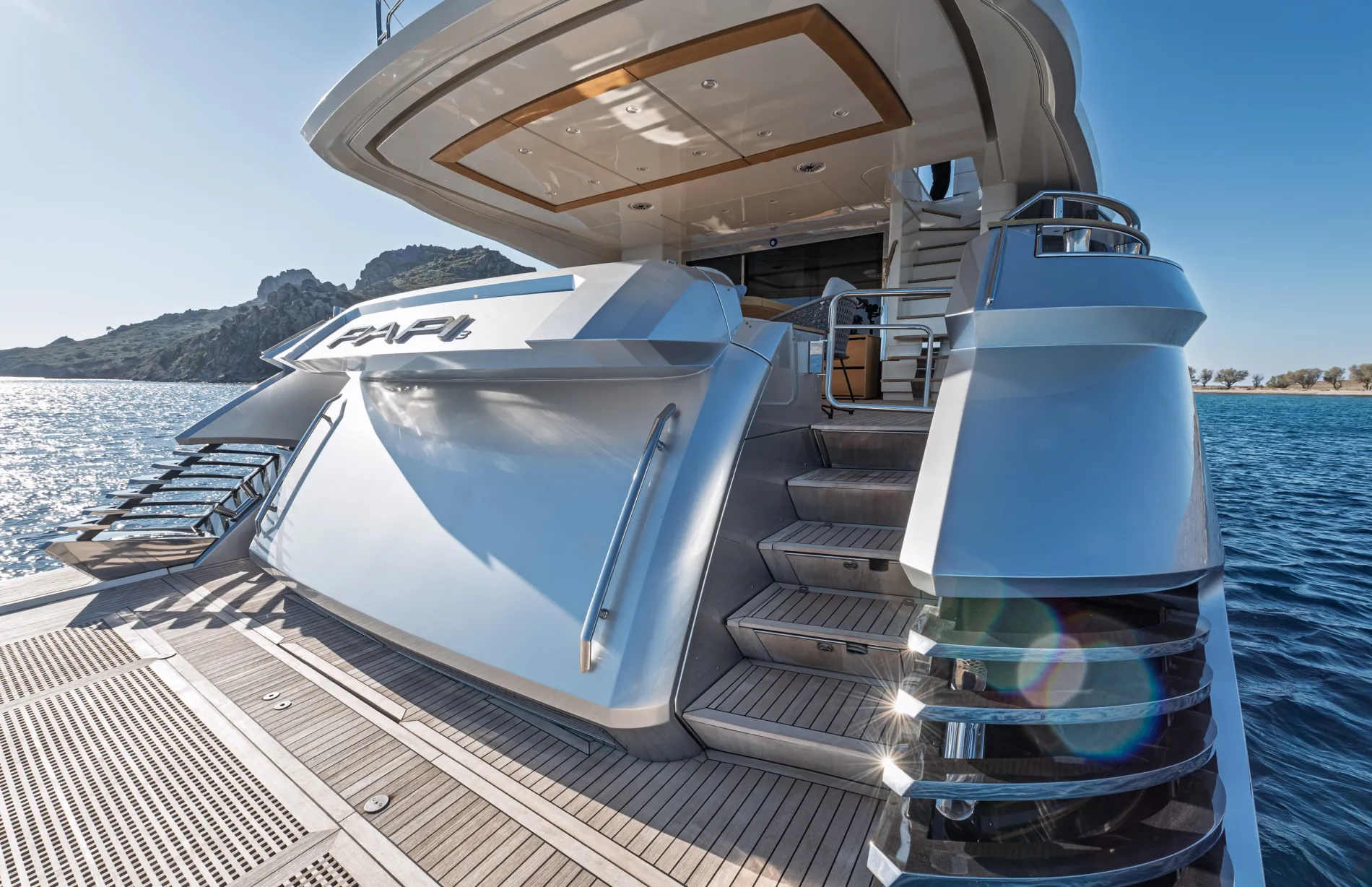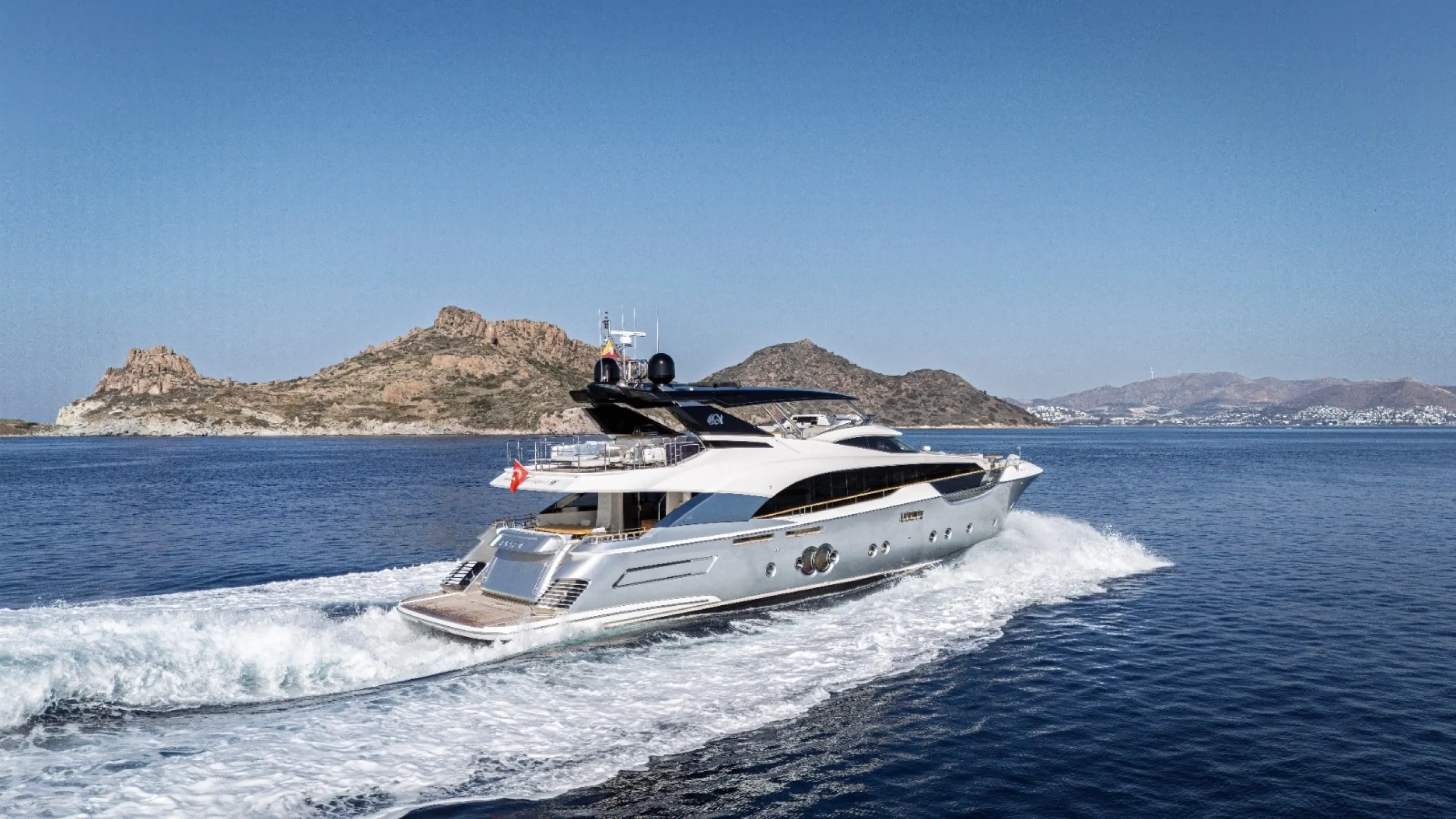 Papi 3 is a standout model in Monte Carlo Yachts’ MCY 96 series. Designed by the renowned studio Nuvolari Lenard, she offers the volume and amenities of a larger yacht, with five cabins, a large flybridge, and a signature bow lounge. Impeccably maintained by her original owner, she’s a compelling choice in the 30-metre market.