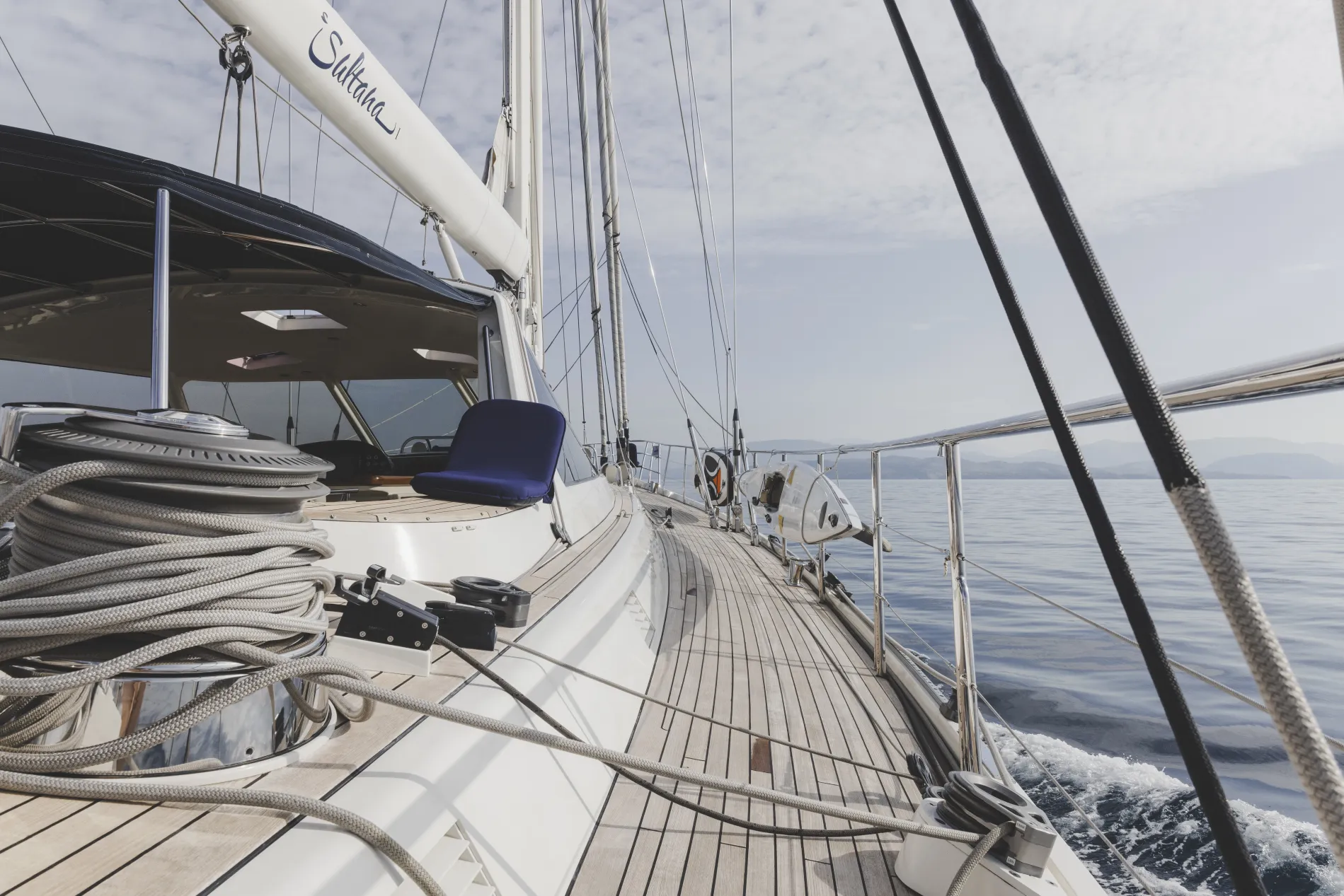 Built by Van Dam Nordia and designed by Robert Van Dam, Sultana is a custom bluewater ketch delivered to an experienced owner in 2003. Her construction followed an exacting brief for a vessel capable of coastal cruising and offshore passages, combining a strong aluminium build, a safe ketch rig and systems specified for reliability at sea.