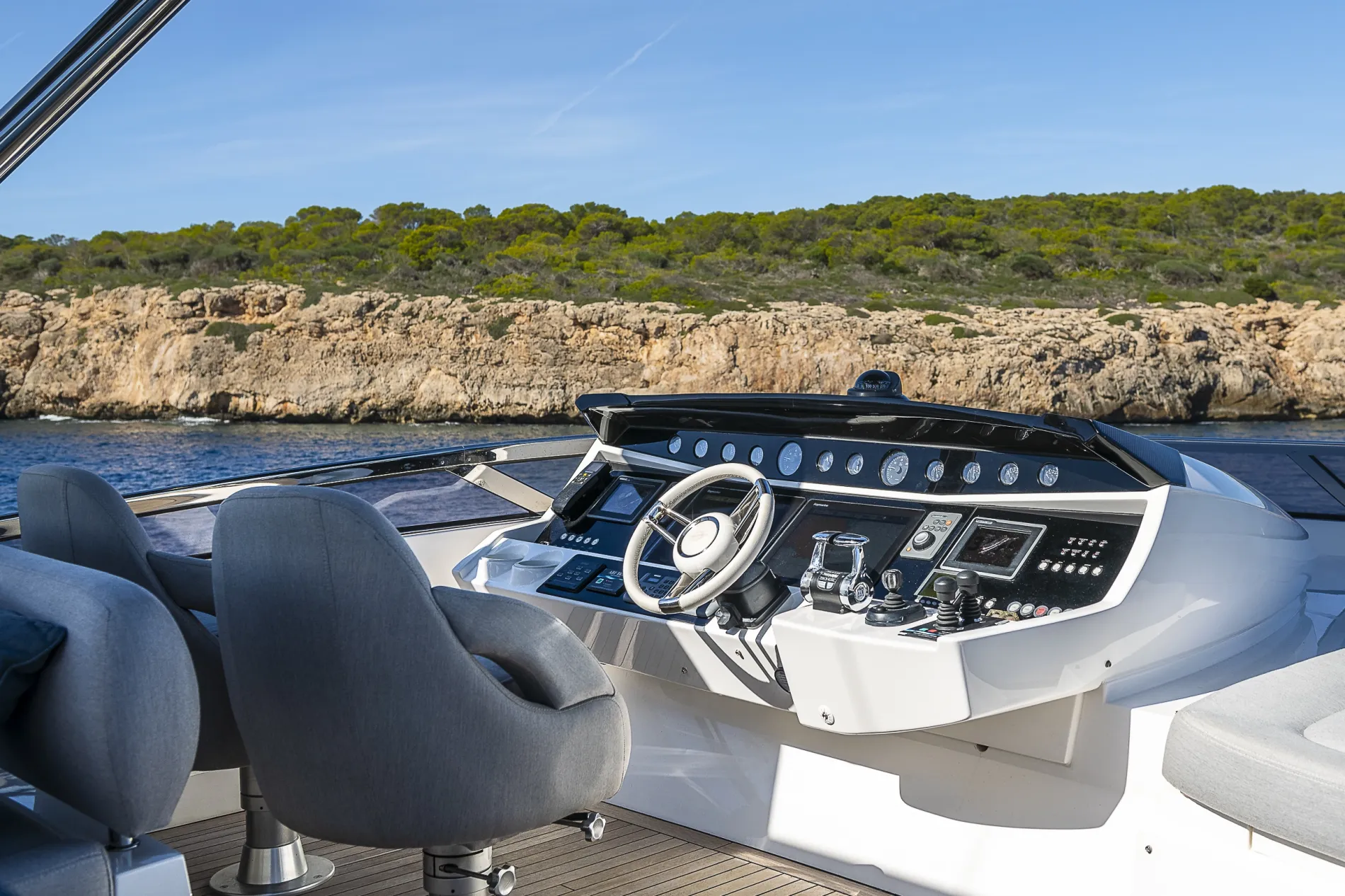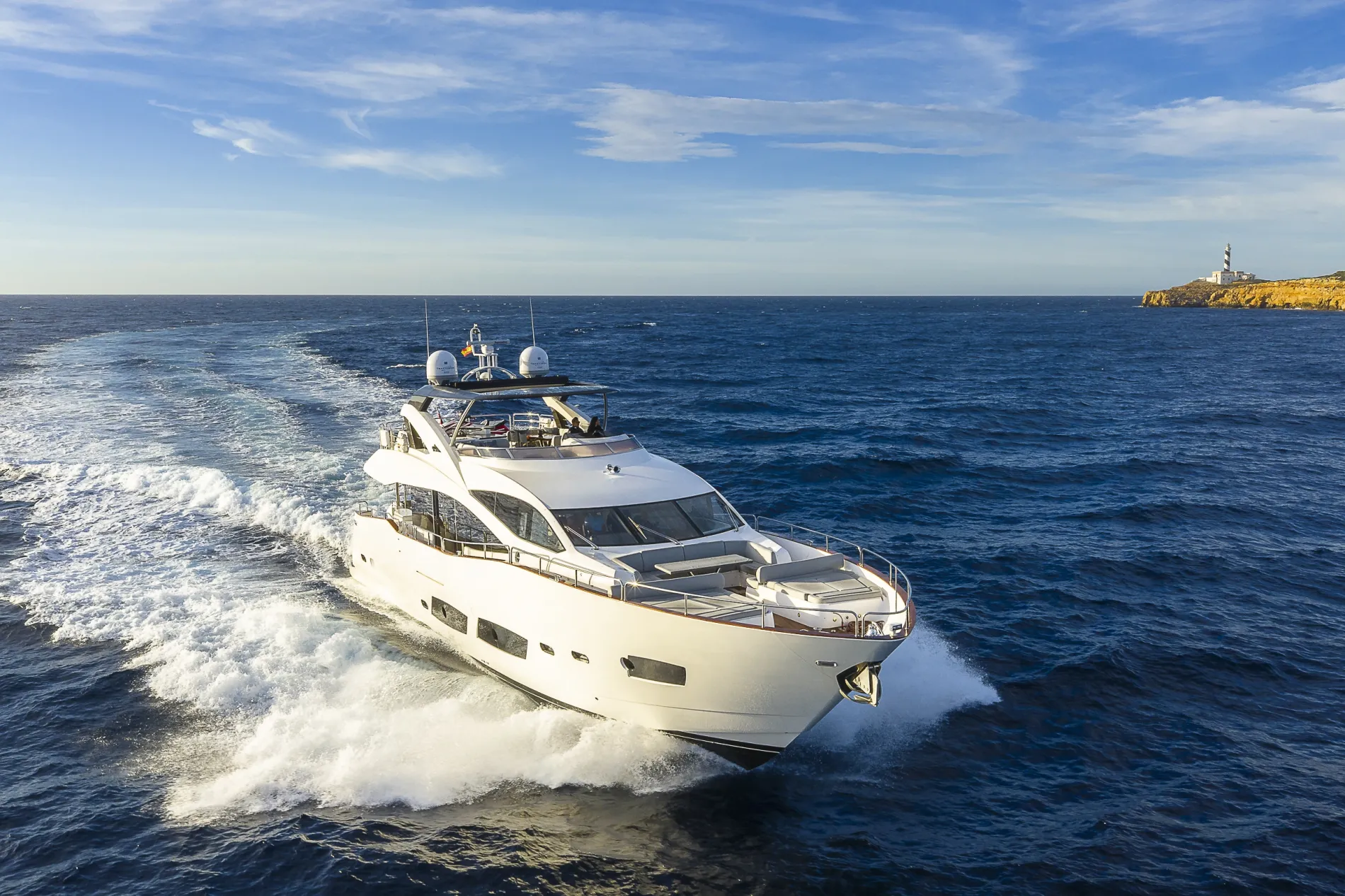 This Time Next Year is a standout example of Sunseeker’s highly sought-after 28M series. Launched as the flagship of Sunseeker’s Yacht line, the model marked a step change for the brand with wraparound glazing, a large flybridge and a new hull form. This Time Next Year is offered for sale with VAT paid.
