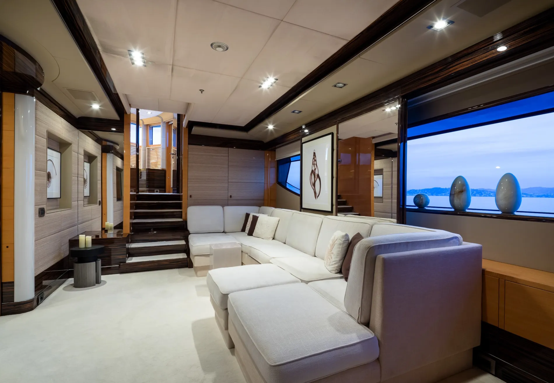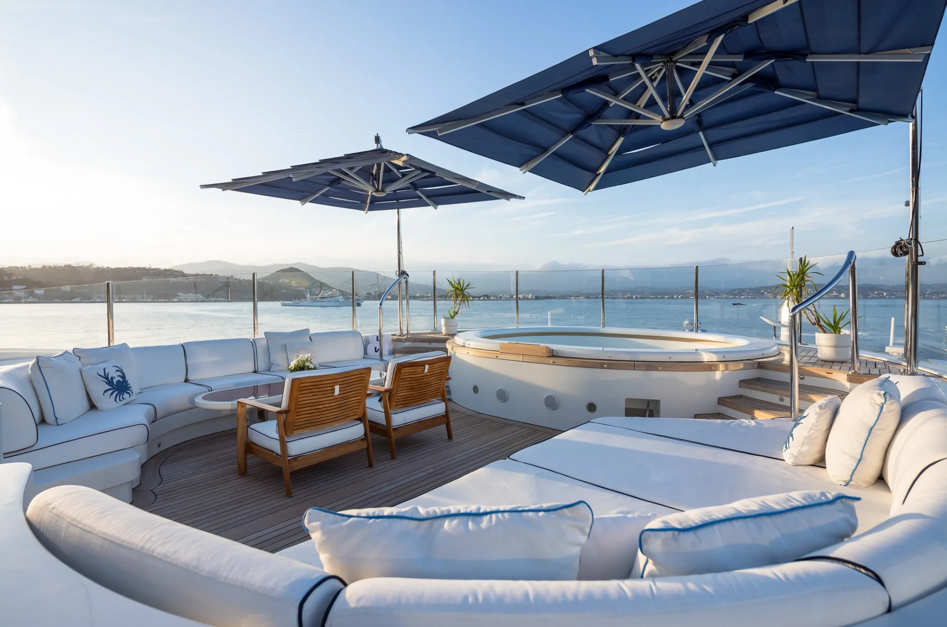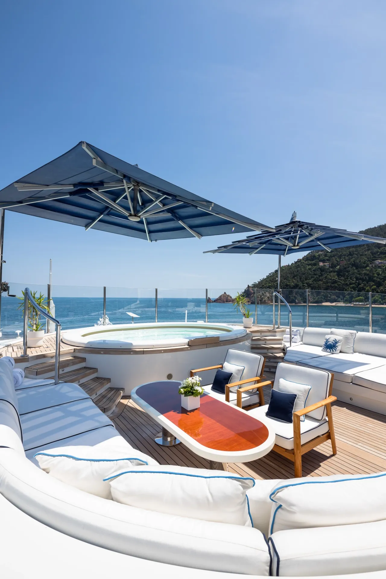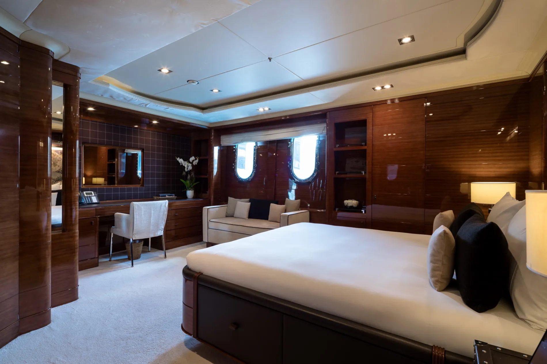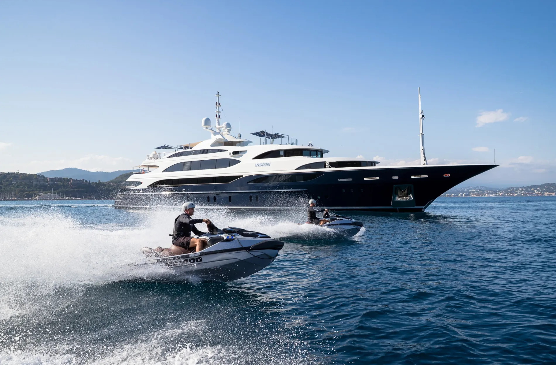 Built on Benetti’s proven 60-metre custom platform and refitted to exacting standards in 2021, Vision blends European craftsmanship with world-cruising capability. Interiors by Pierre-Yves Rochon bring warm residential flair, while standout features like a beach club, helipad, and two-level master suite place her among the most versatile yachts in her class.