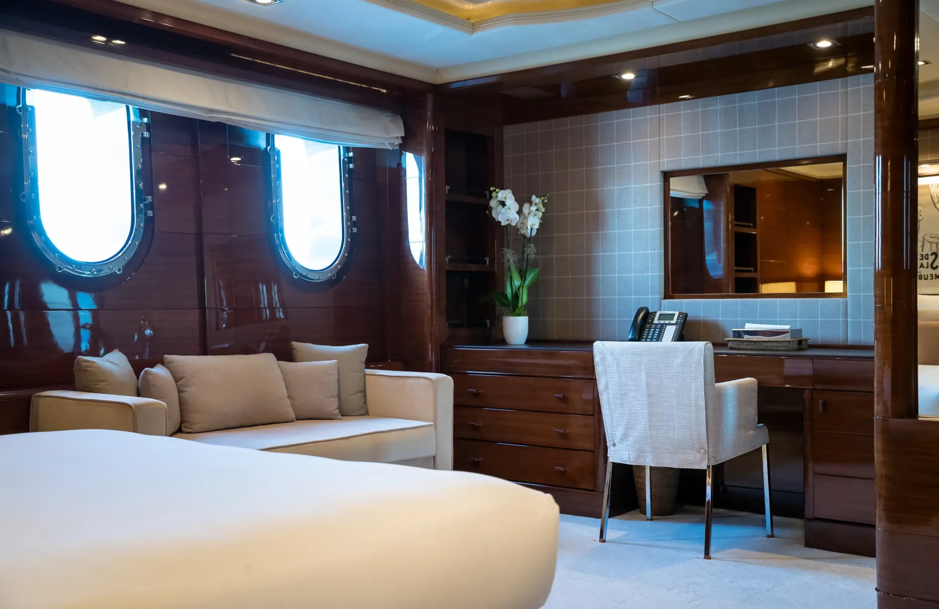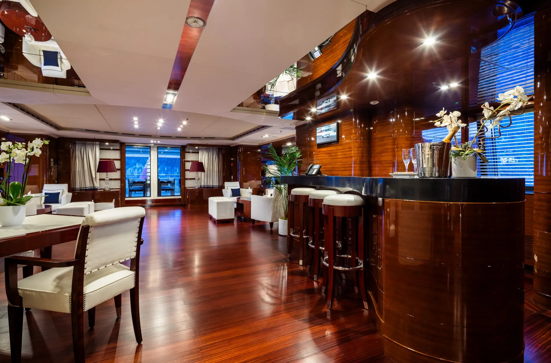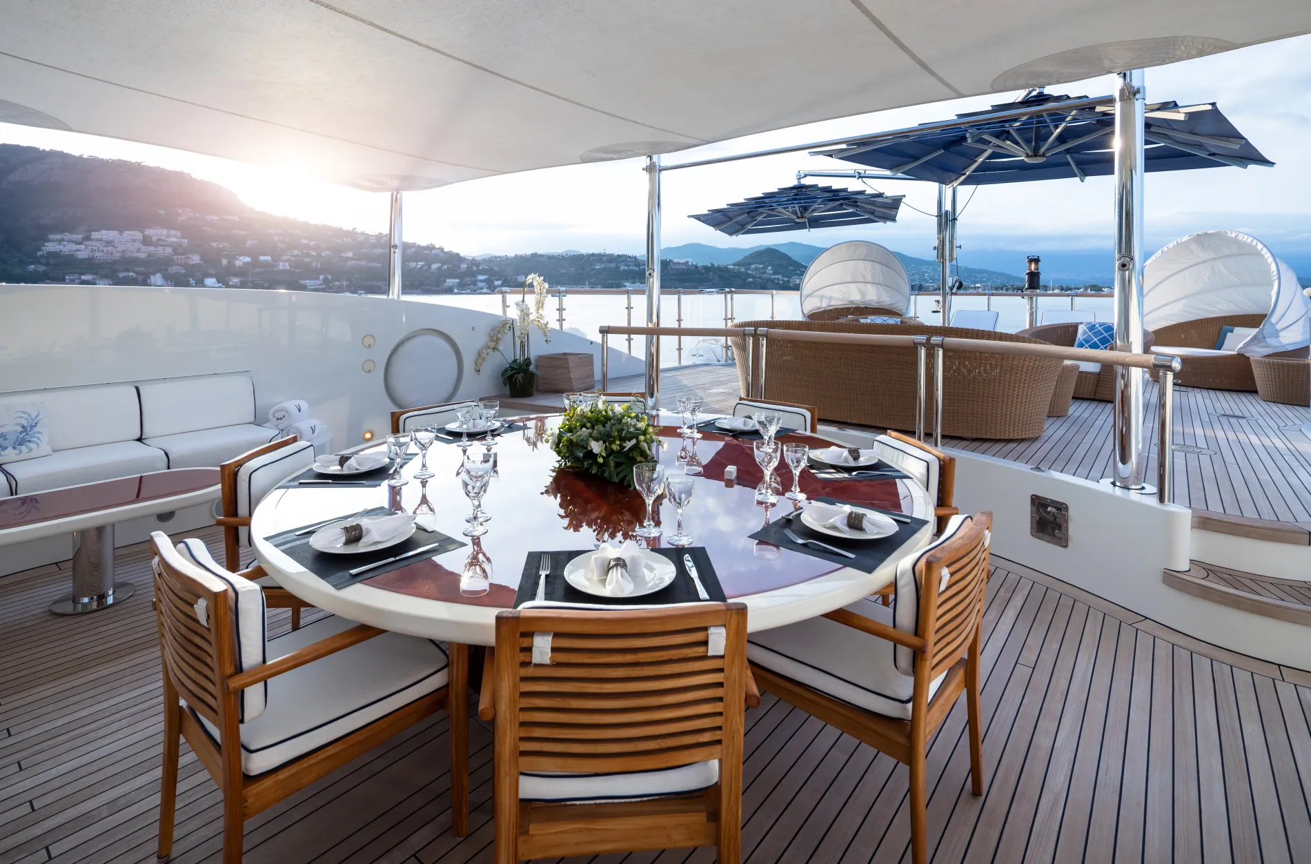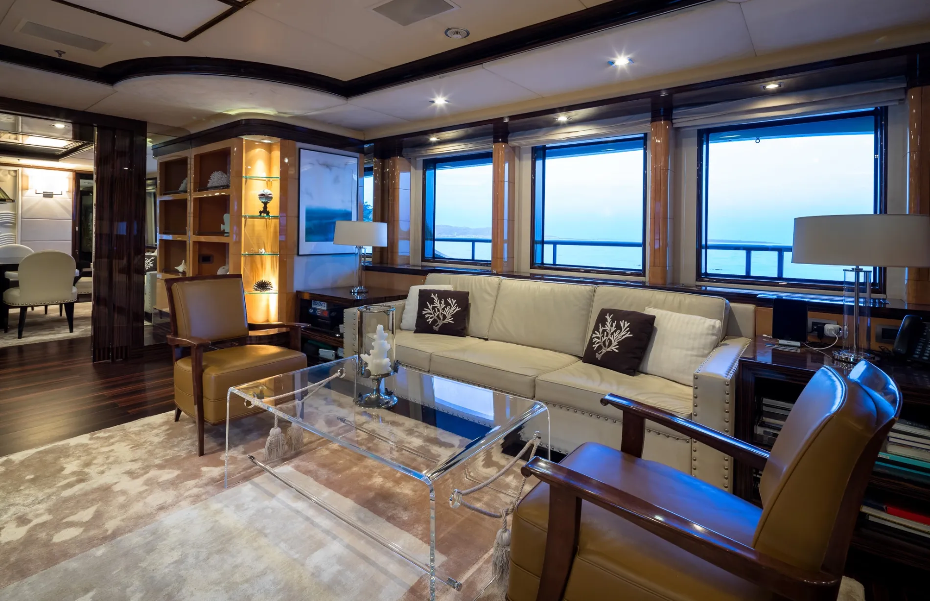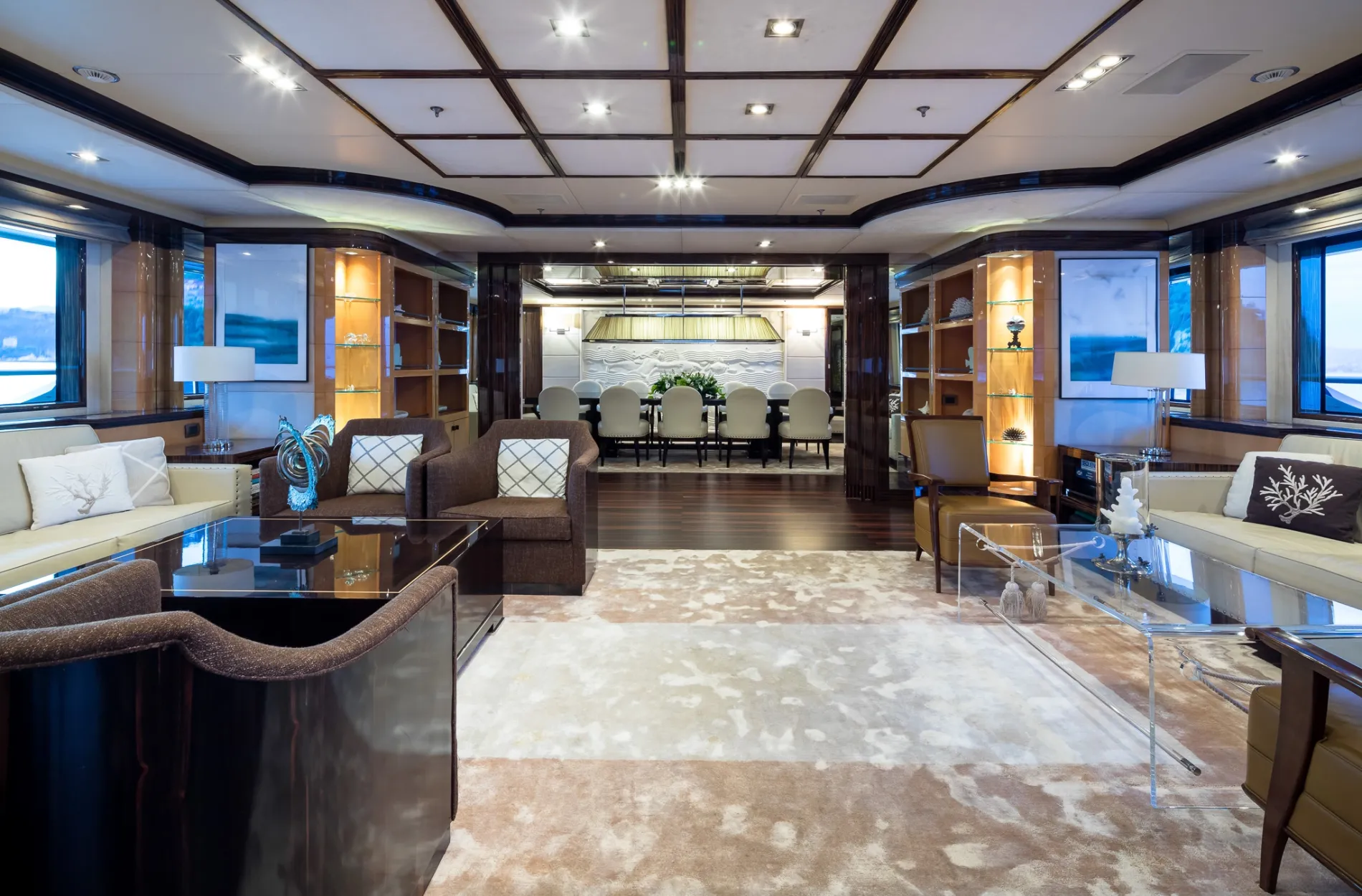 Built on Benetti’s proven 60-metre custom platform and refitted to exacting standards in 2021, Vision blends European craftsmanship with world-cruising capability. Interiors by Pierre-Yves Rochon bring warm residential flair, while standout features like a beach club, helipad, and two-level master suite place her among the most versatile yachts in her class.