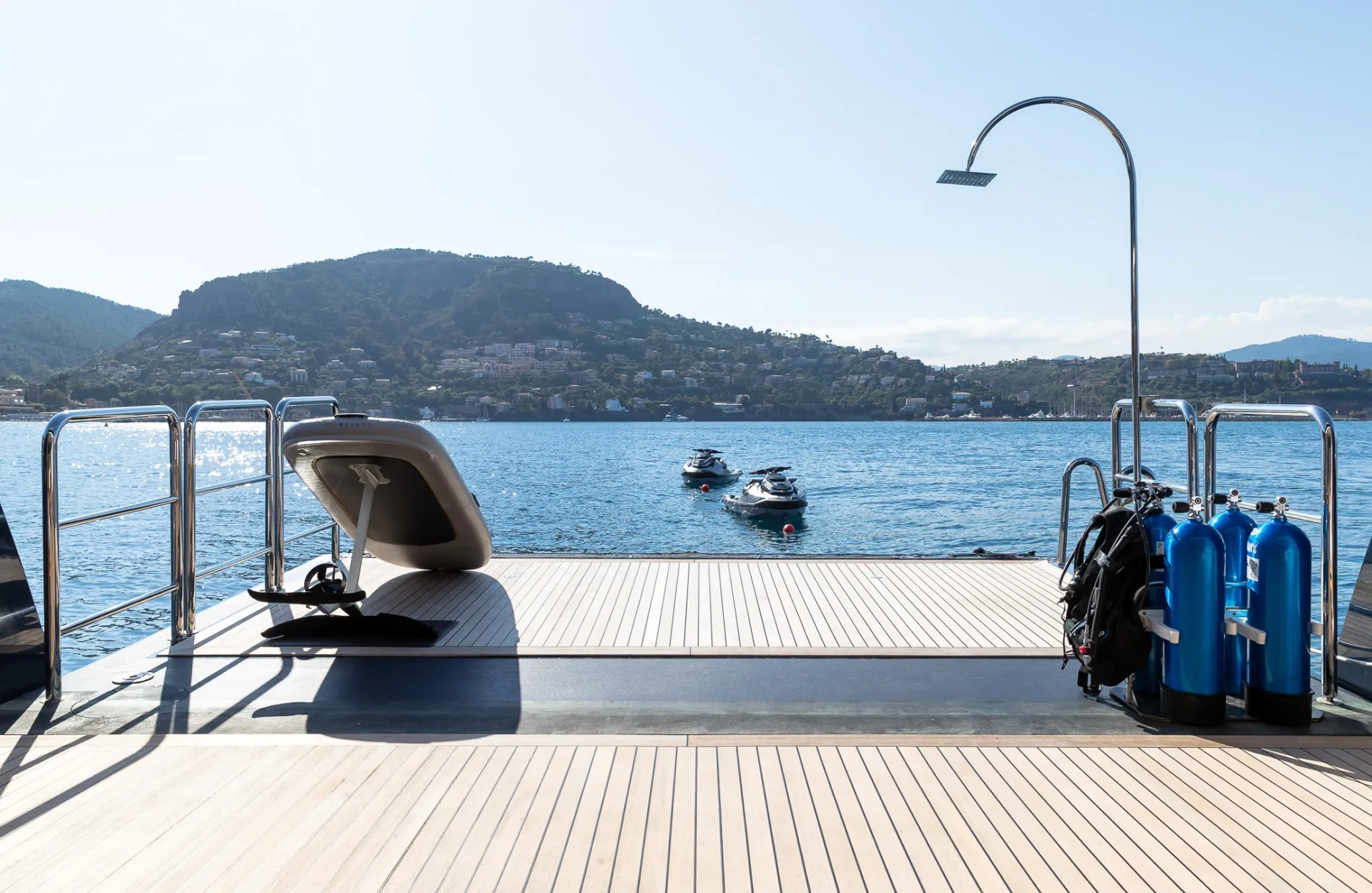 The aft sundeck is reinforced for helicopter operations and also doubles as a sun lounge.