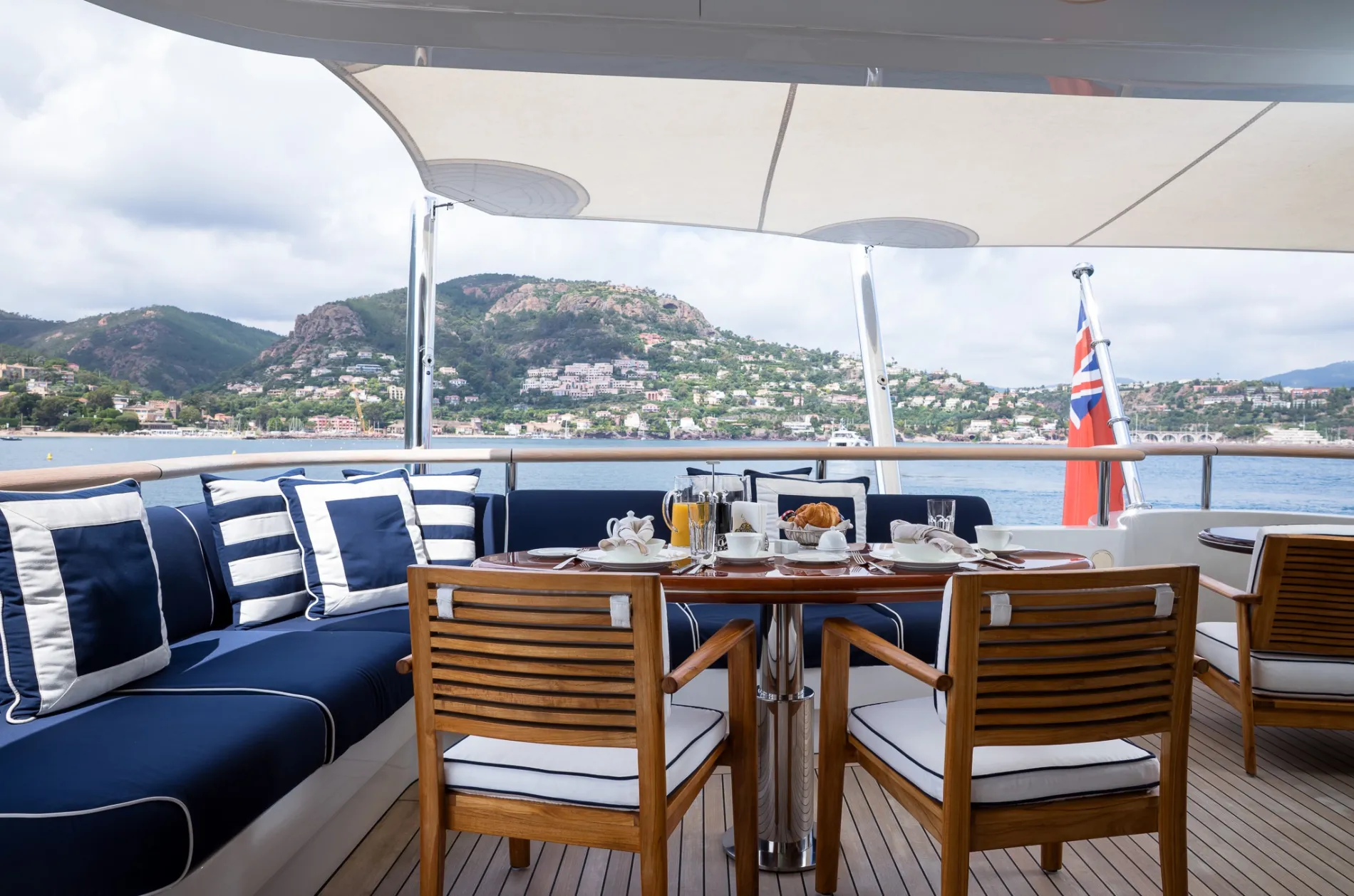 Generous al fresco dining area with direct access to the swim platform and tenders.