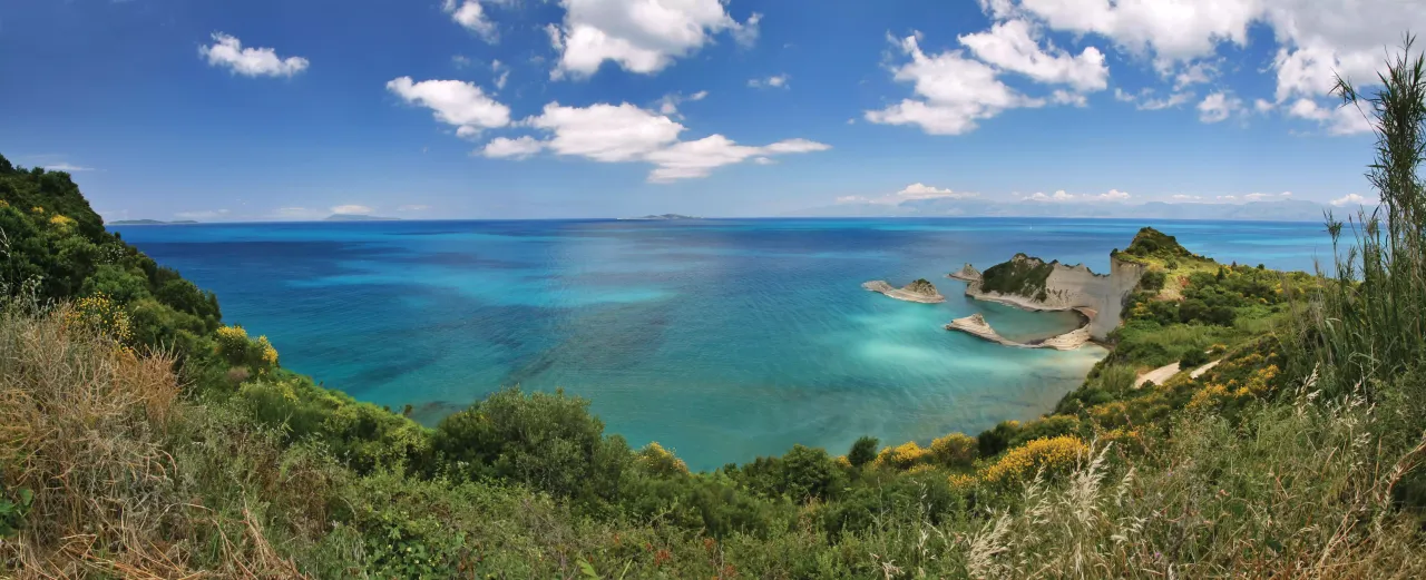The Ionian island chain runs along the west coast of mainland Greece and comprises some of Greece’s most famous island destinations, such as Corfu and Paxos. With influences from British, French