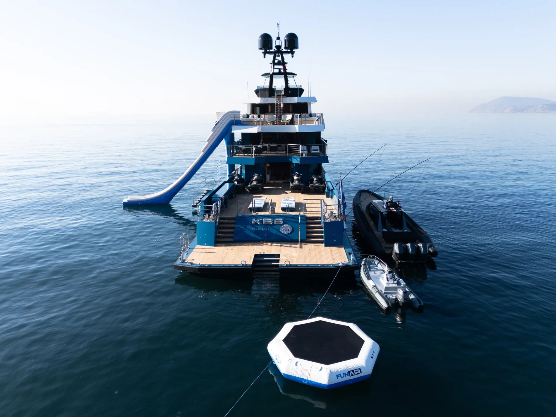 KING BENJI has no interest in blending in. With her turquoise hull, crow’s nest, vast aft deck and huge windows, she cuts a wholly different figure on the water.