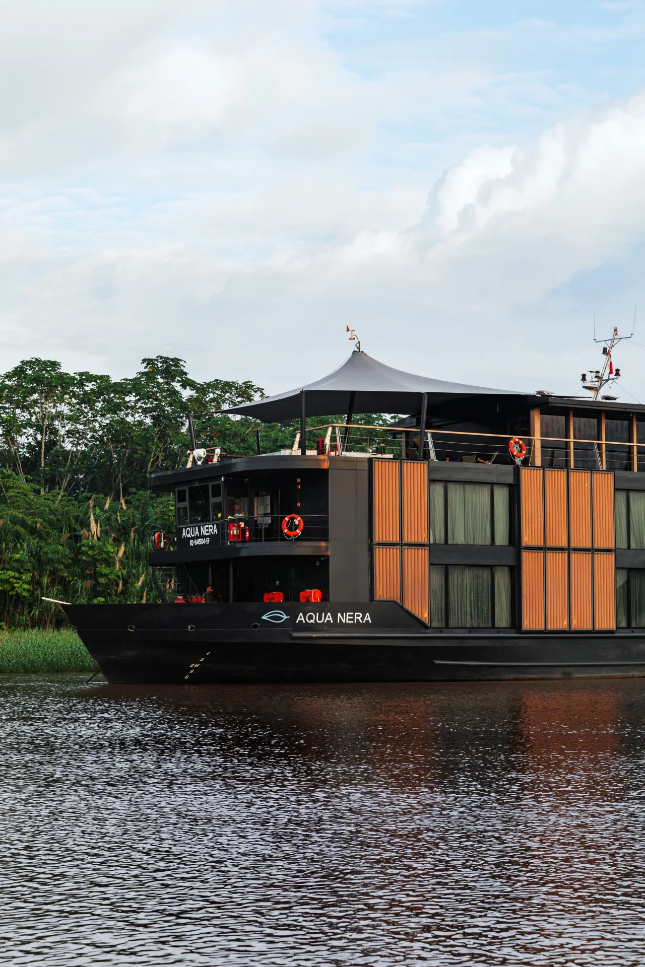 Aqua Nera’s decks are designed to keep guests close to the sights and sounds of the Amazon. The top-level observation deck offers the best vantage point for wildlife spotting, while shaded outdoor lounges at the bow and stern provide comfortable spaces to unwind.