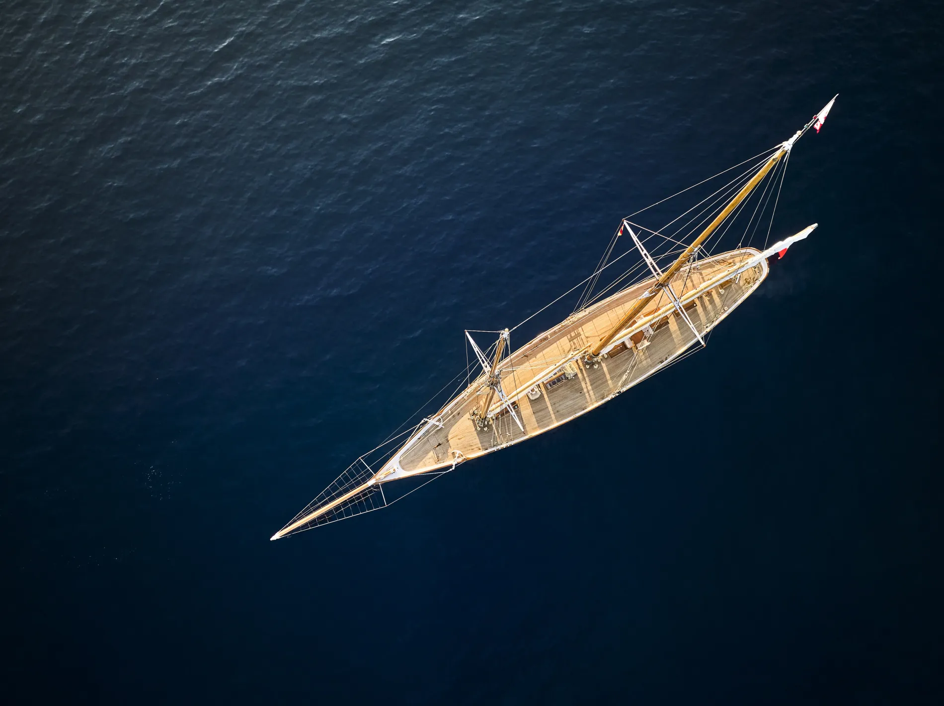 Elena’s expansive decks provide open areas for dining and relaxation, complemented by the commanding presence of her rig and spars, which come alive under sail.