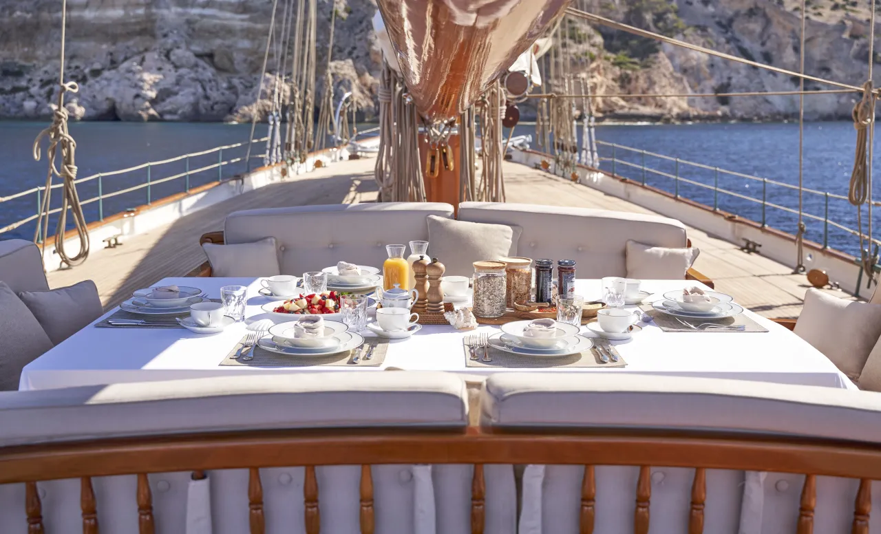 Enjoy breakfast spreads, long lunches, and lavish dinners on deck.
