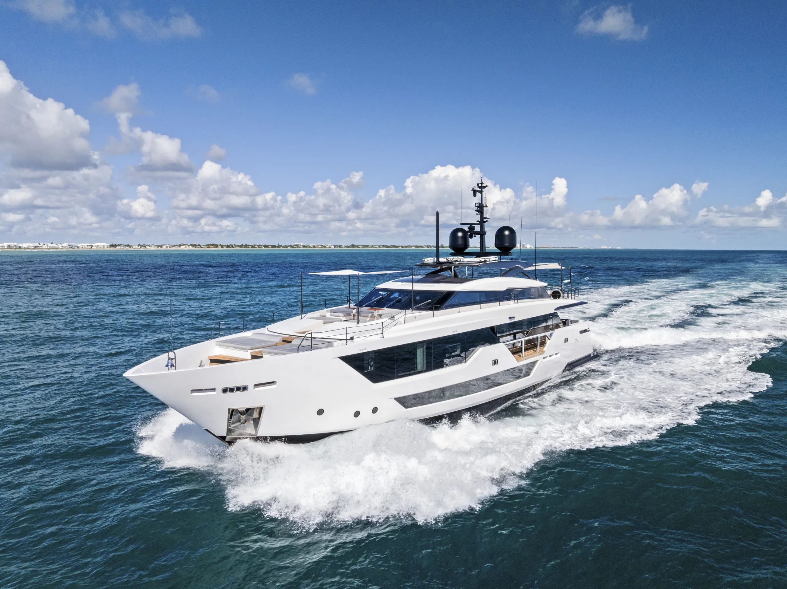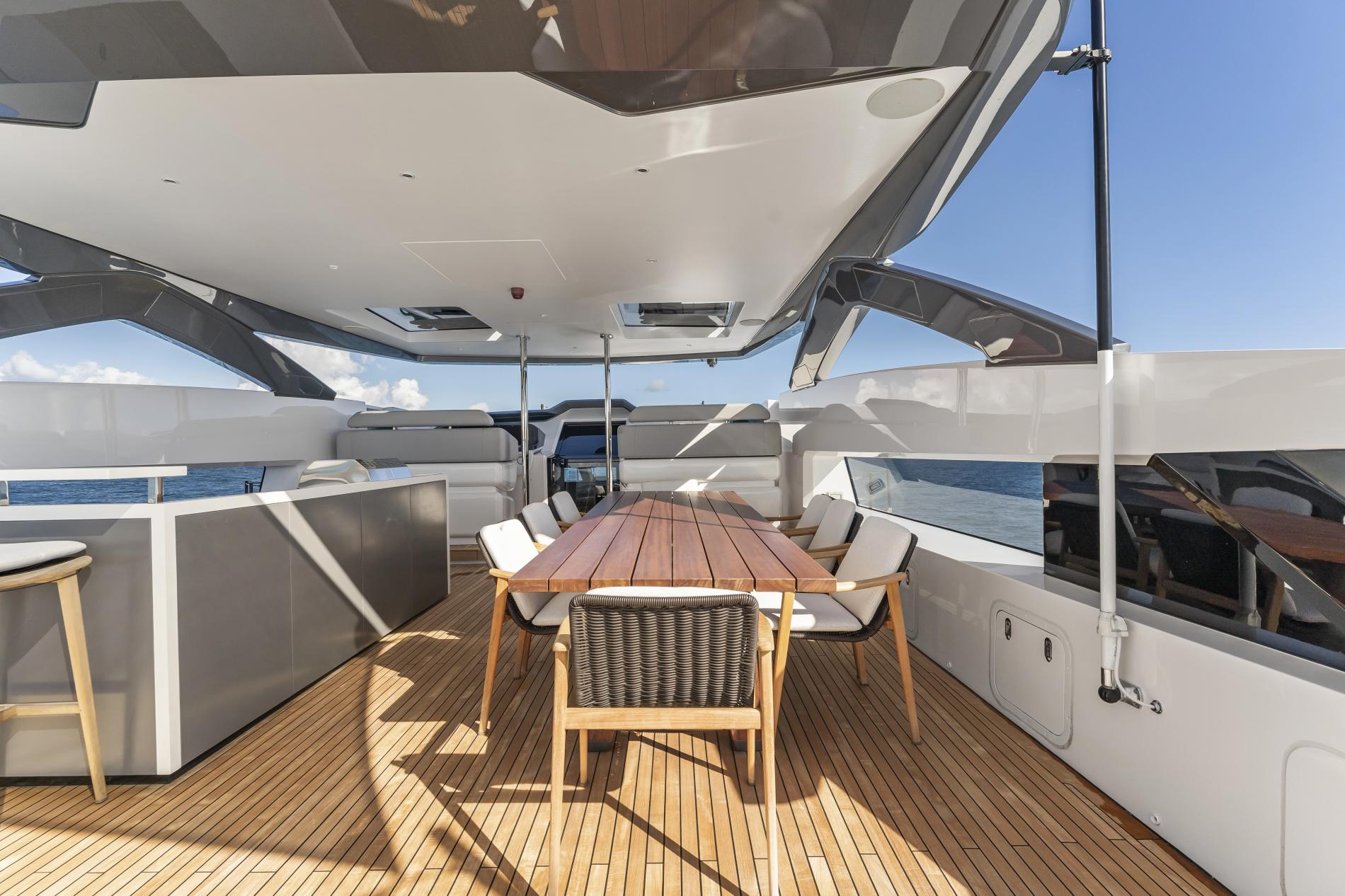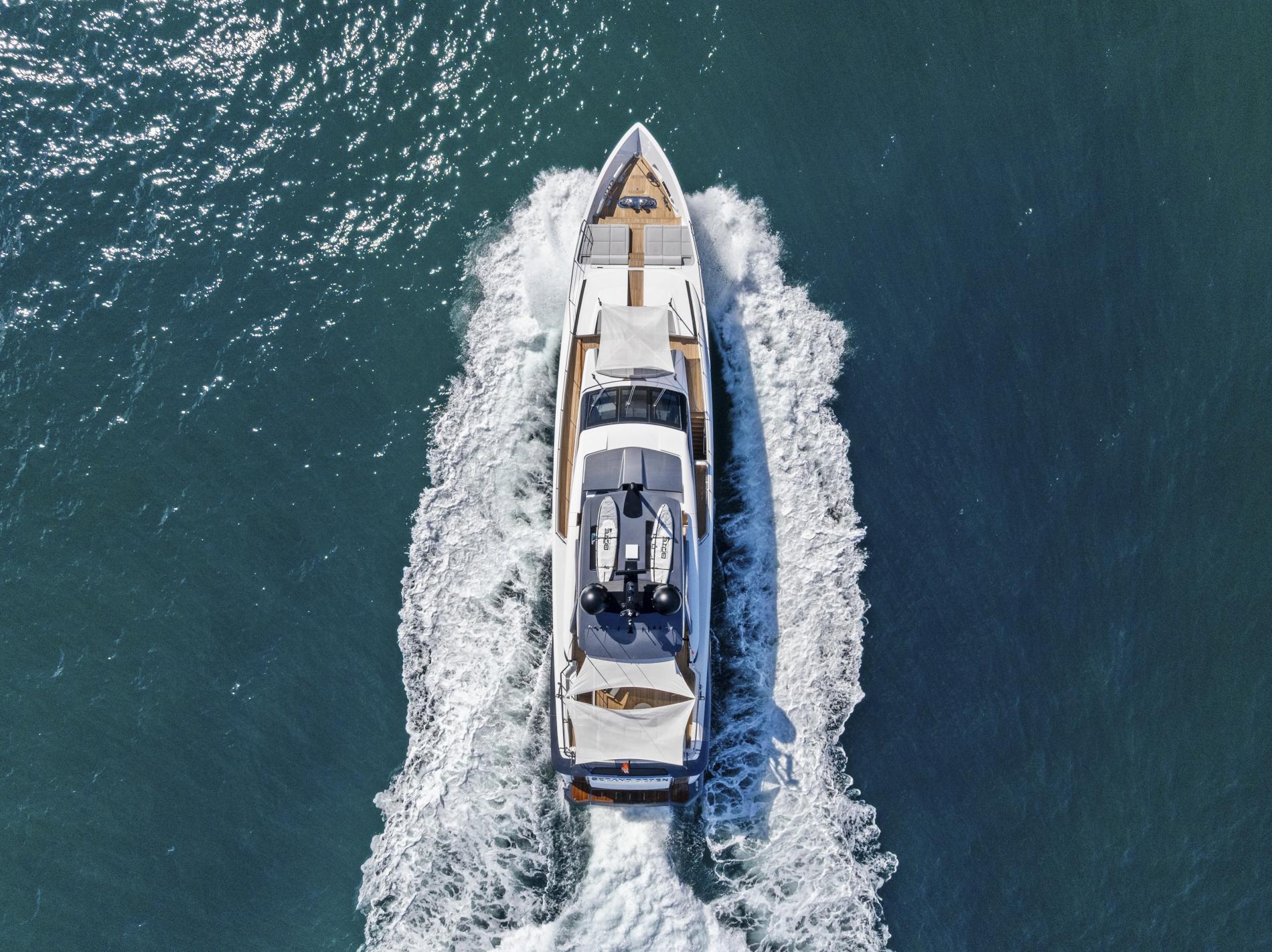 EVEXIAS I is a 32.8-metre Custom Line, bringing Francesco Paszkowski’s crisp Italian design to a yacht with exceptional charter appeal. Bright interiors, expansive deck spaces and a professional crew of five make life on board feel relaxed, while her 11.2m Valhalla V-37 chase tender opens up the best of the Bahamas and Caribbean.