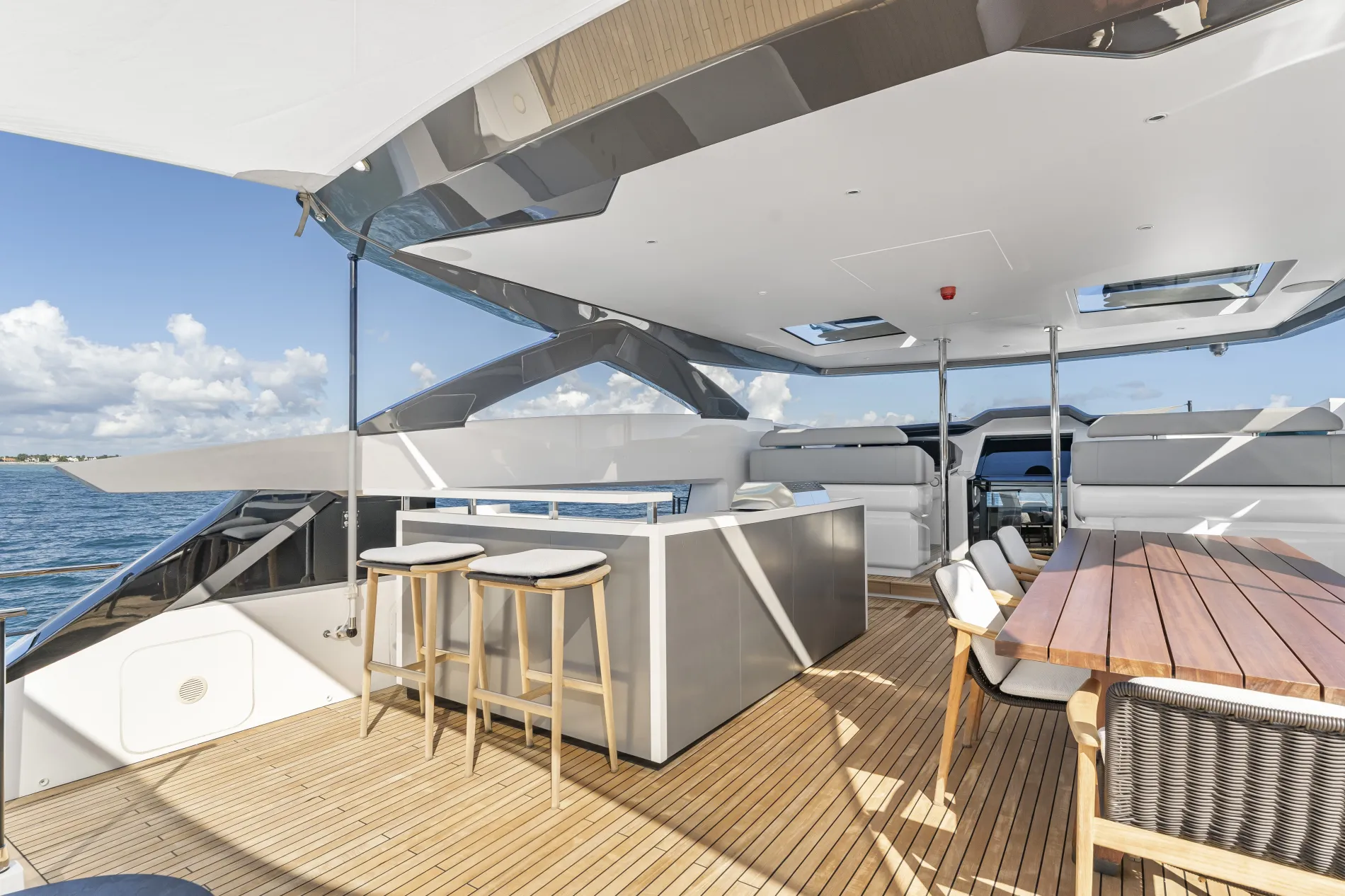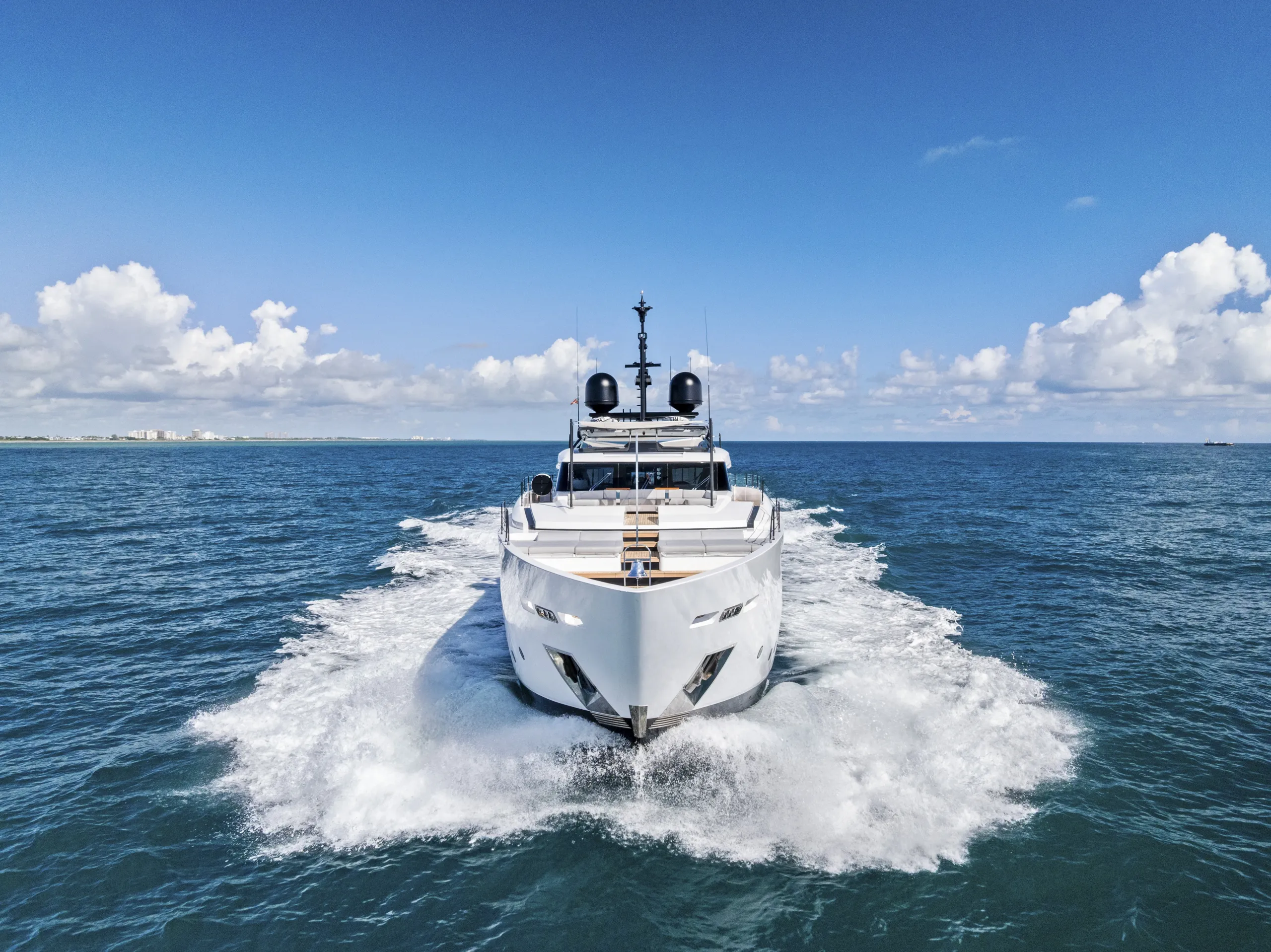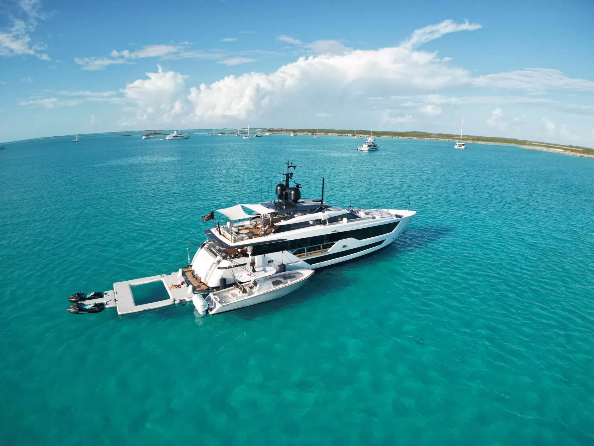 EVEXIAS I is a 32.8-metre Custom Line, bringing Francesco Paszkowski’s crisp Italian design to a yacht with exceptional charter appeal. Bright interiors, expansive deck spaces and a professional crew of five make life on board feel relaxed, while her 11.2m Valhalla V-37 chase tender opens up the best of the Bahamas and Caribbean.