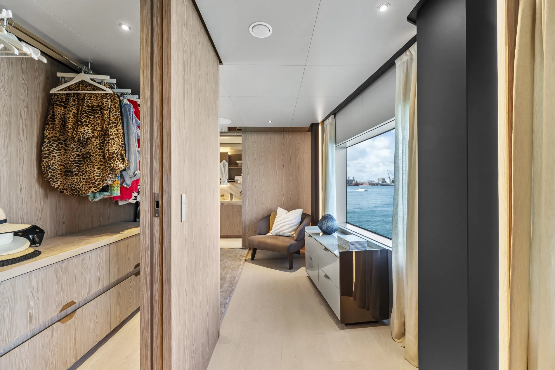 Inside, EVEXIAS I has a bright contemporary feel, with expansive windows bringing the shifting colours of the water into the main salon throughout the day.