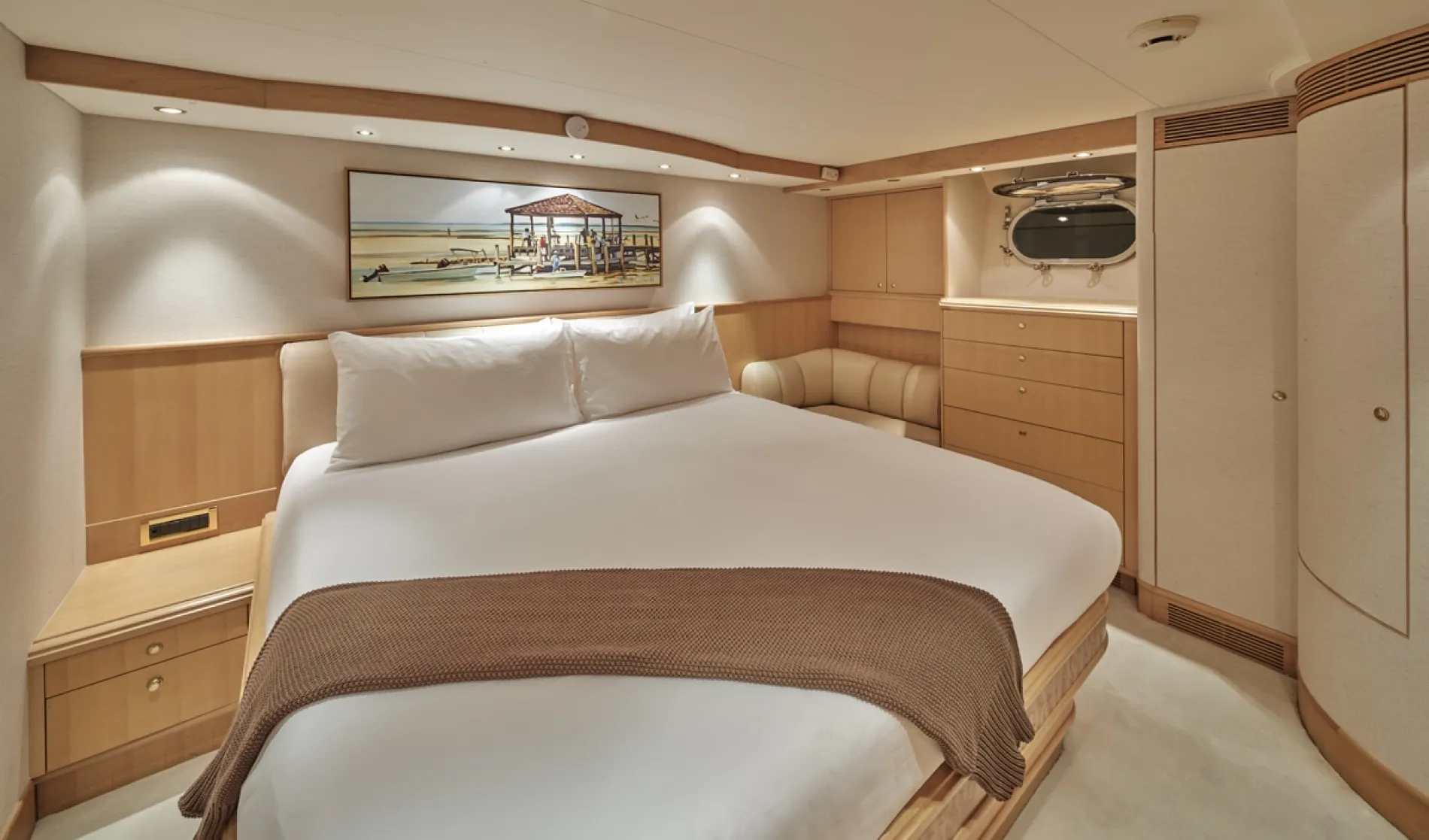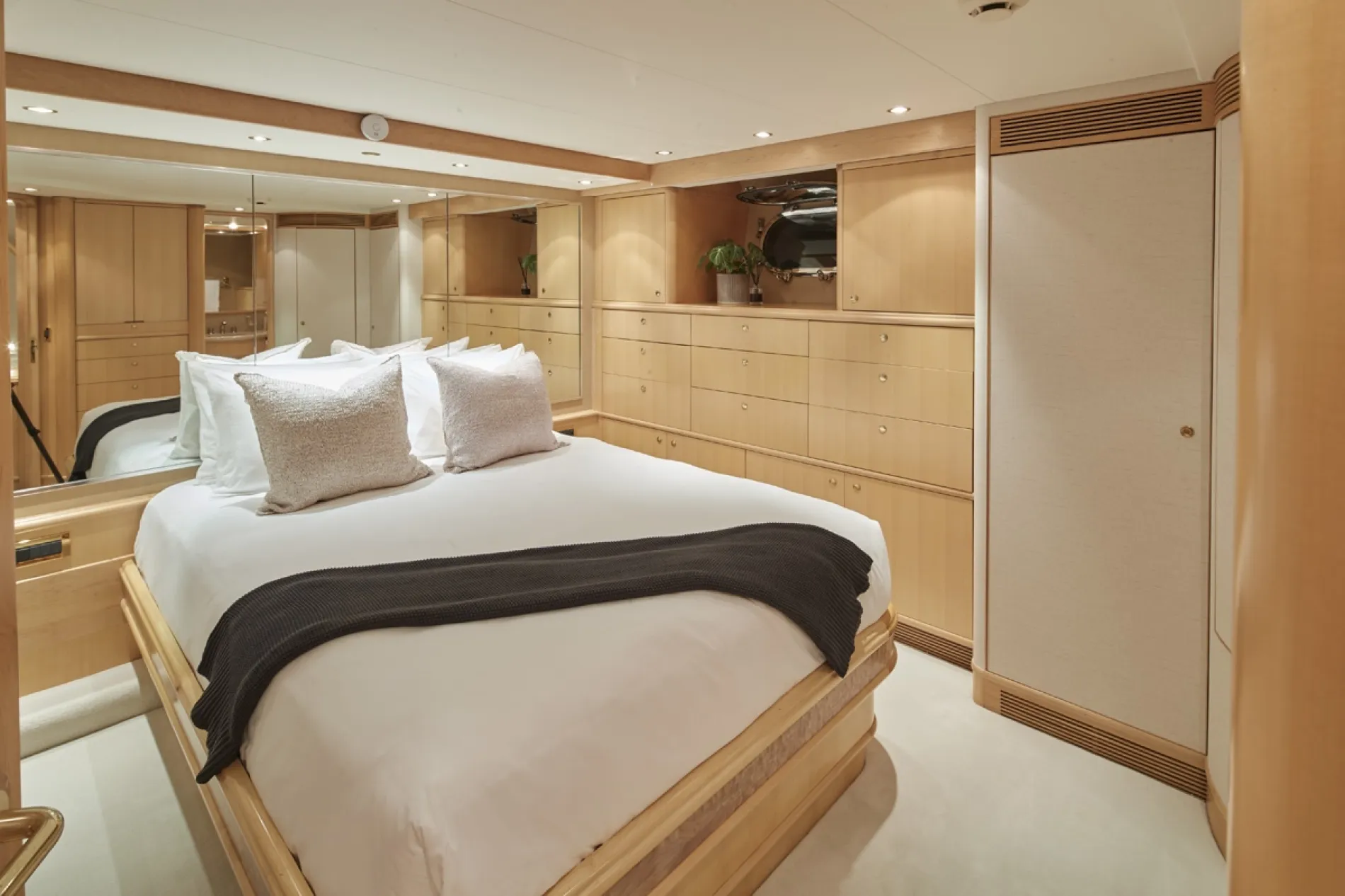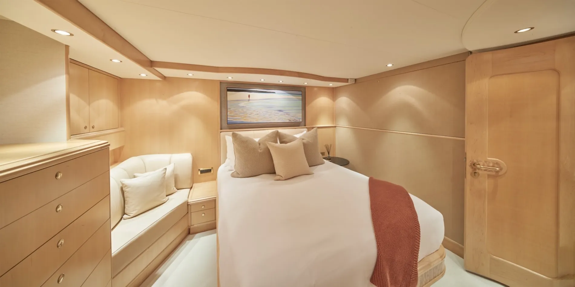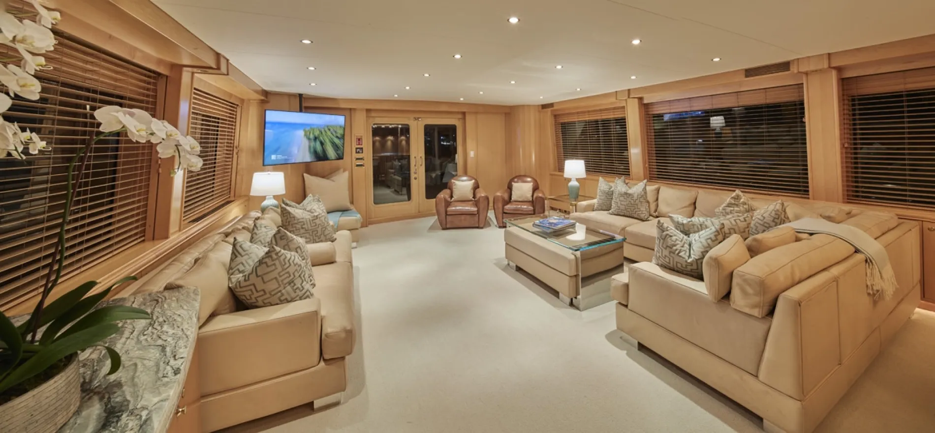 FAVOR offers a relaxed, spacious setting for island hopping, family time and warm-water cruising. Available for charter year-round in the Caribbean, guests can enjoy a large sun deck, family-friendly swim platform, and all-weather al fresco dining, complemented by a 32ft Intrepid chase tender for high-speed transfers and day trips.
