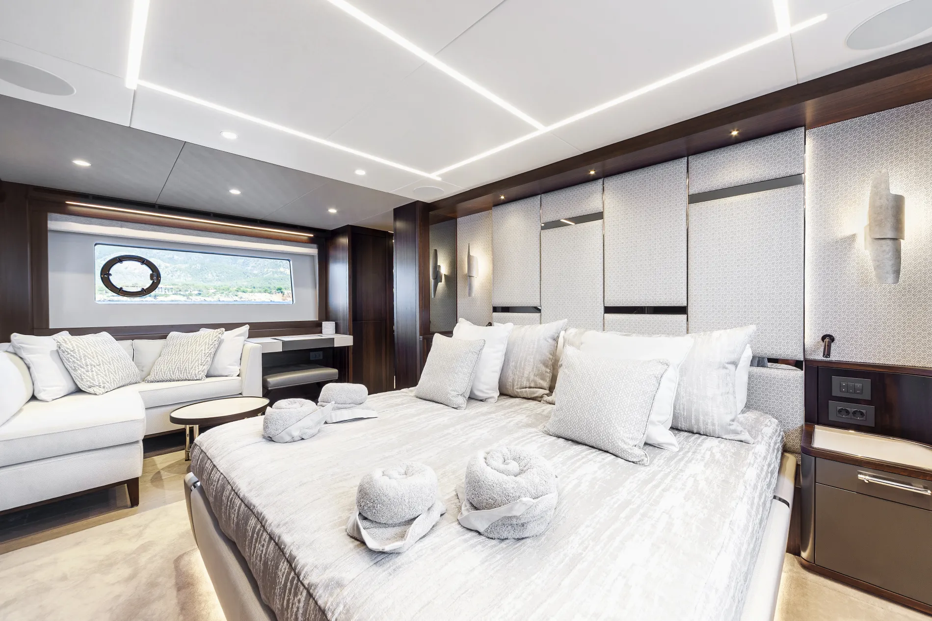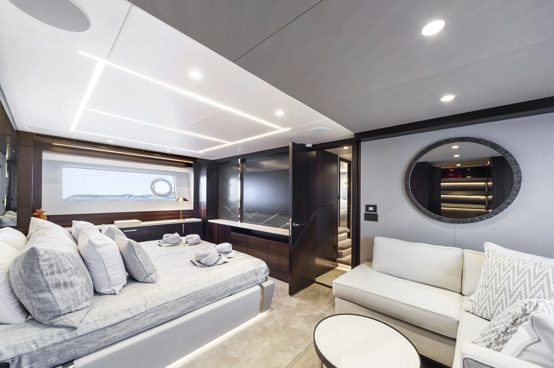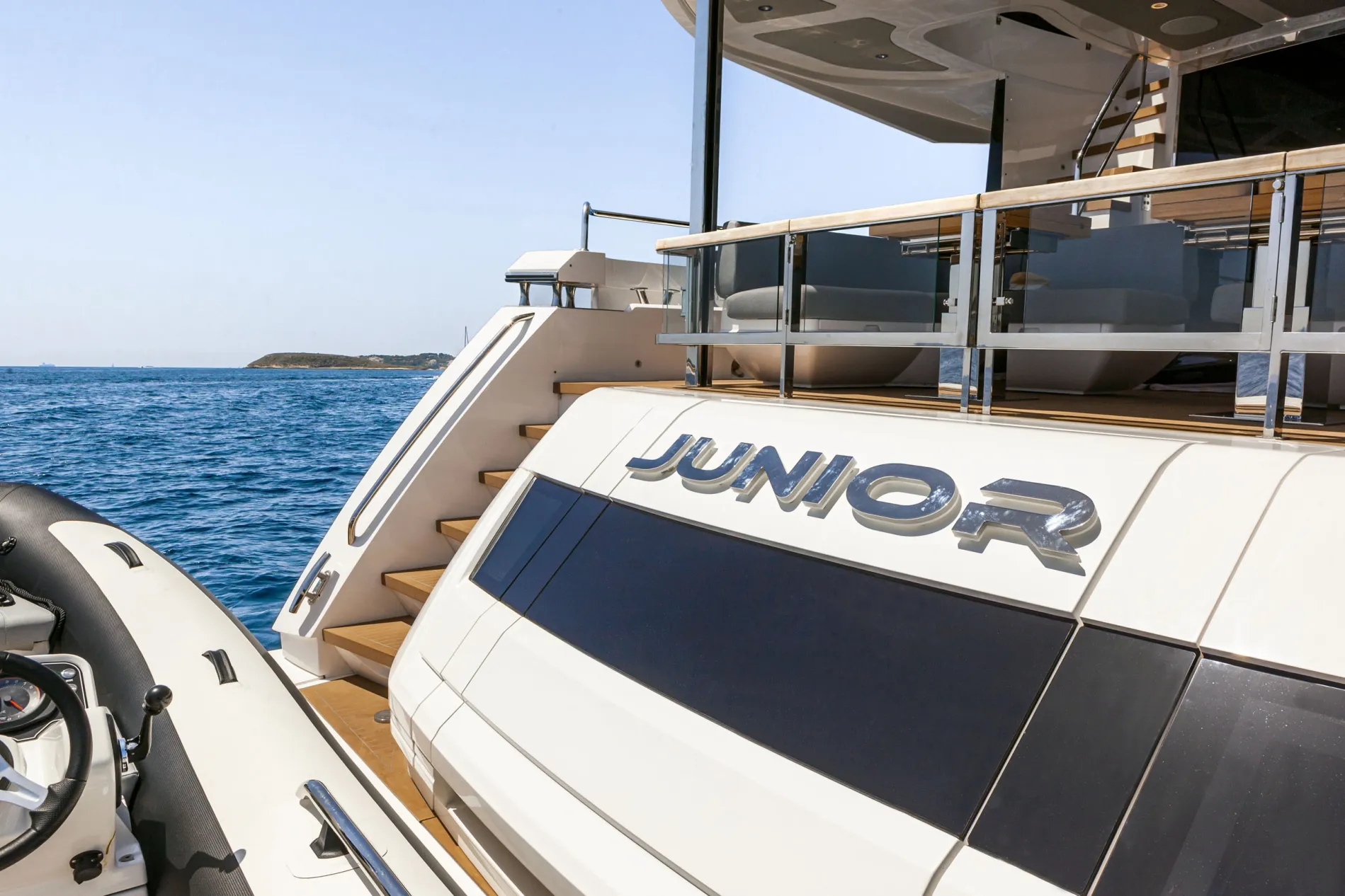 Part of Sunseeker’s much-admired 88 Yacht series, JUNIOR draws on the British shipyard’s instinct for bringing guests closer to the water, from the award-winning beach club and cockpit to a sundeck and interior designed to keep the sea in constant view.