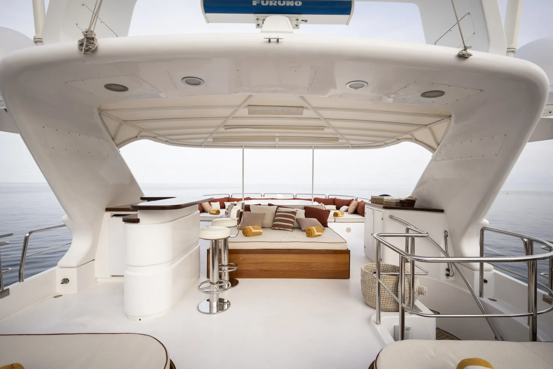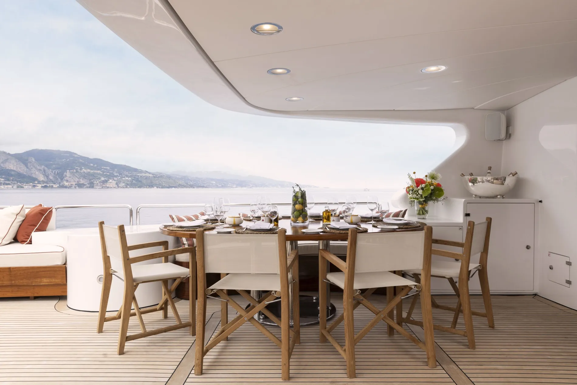 With three expansive decks to choose from, Loulou invites you to experience life outdoors in true Mediterranean style. Start your day on the sundeck; enjoy leisurely lunches on the shaded aft deck and dine alfresco on the upper deck under the stars.