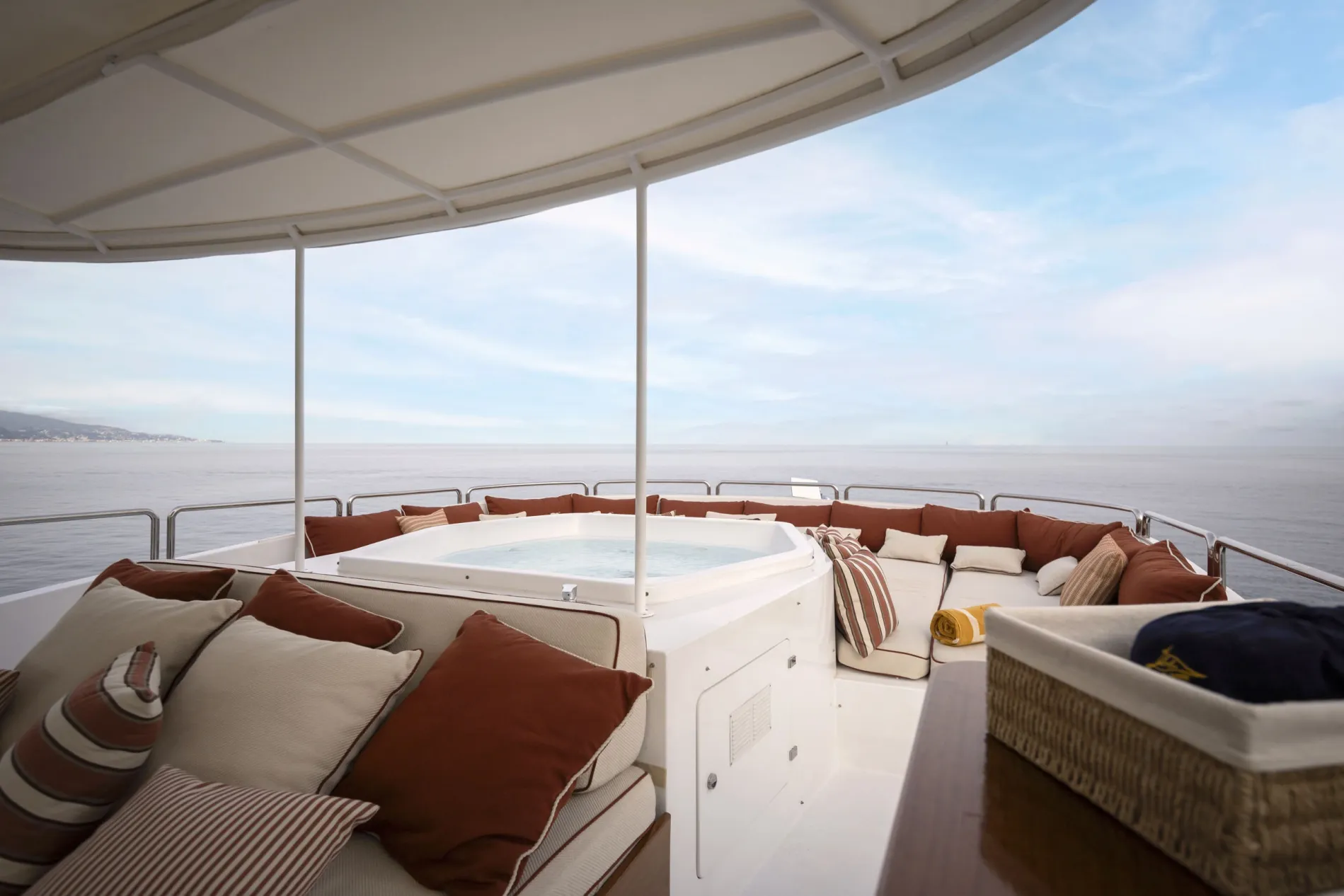 A central jacuzzi sits on the sundeck surrounded by sunpads