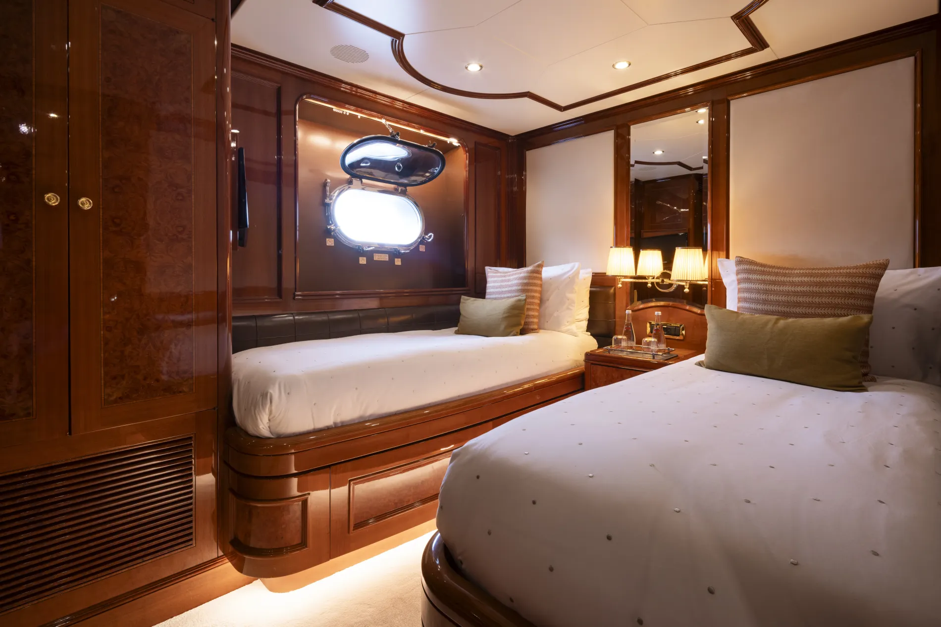Two twin cabins with en suite bathrooms, one featuring a Pullman berth for added versatility.