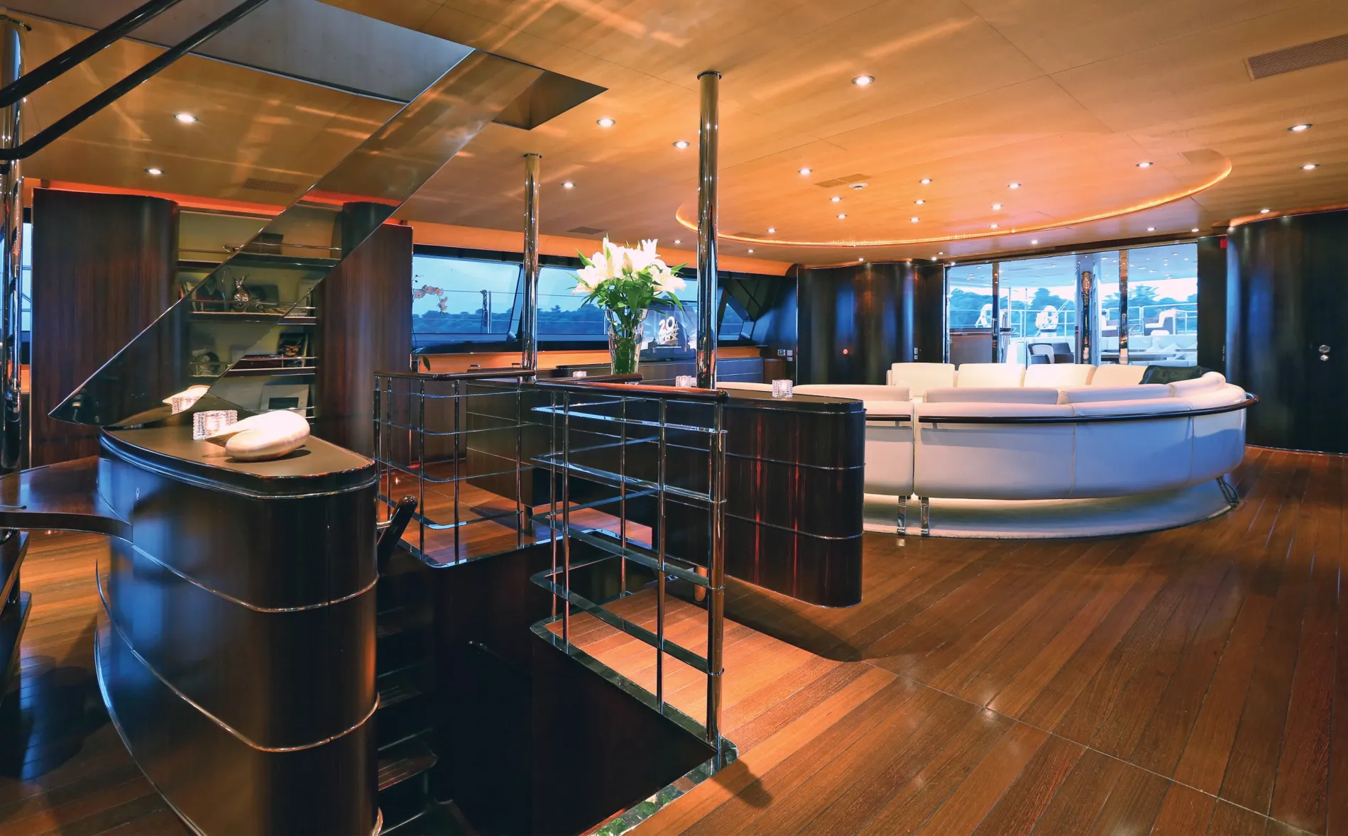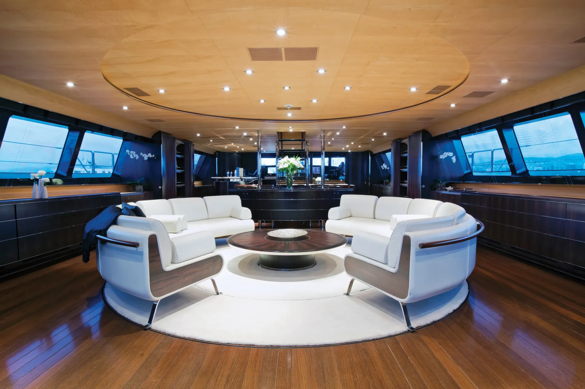 Parsifal III accommodates up to 12 guests across five spacious en suite cabins, including a full-beam owner’s suite. Each cabin features high-gloss wood finishes and is equipped with a modern infotainment system.