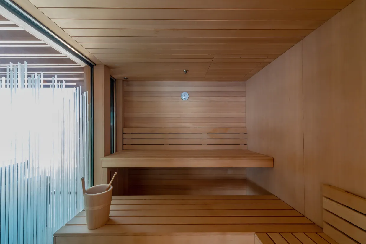 A glass-fronted Finnish sauna and a Sahara noir marble Hammam await guests.