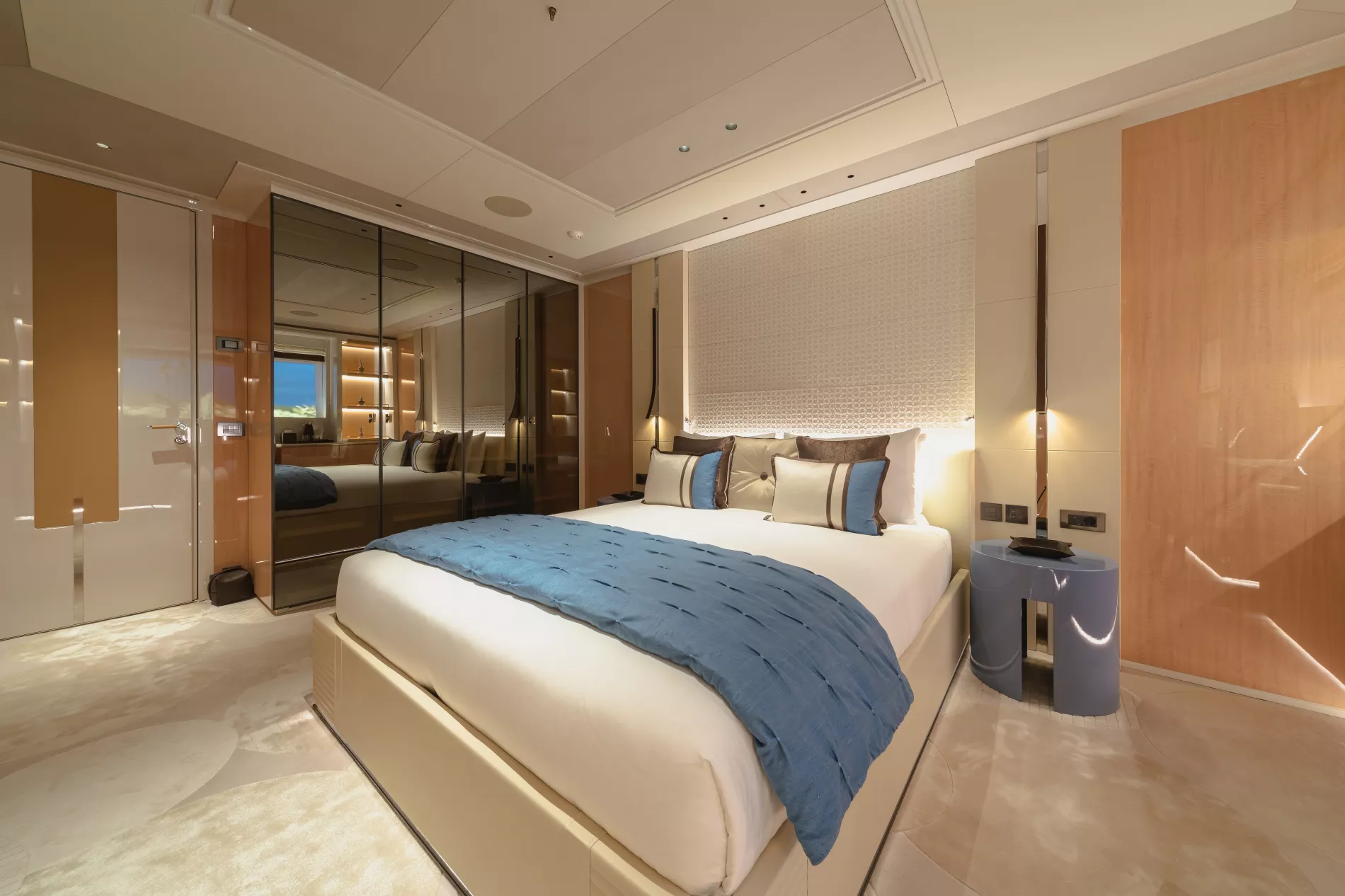 The owner’s suite occupies a scale more akin to a private apartment, with 180° views, dressing area, and its own private deck.