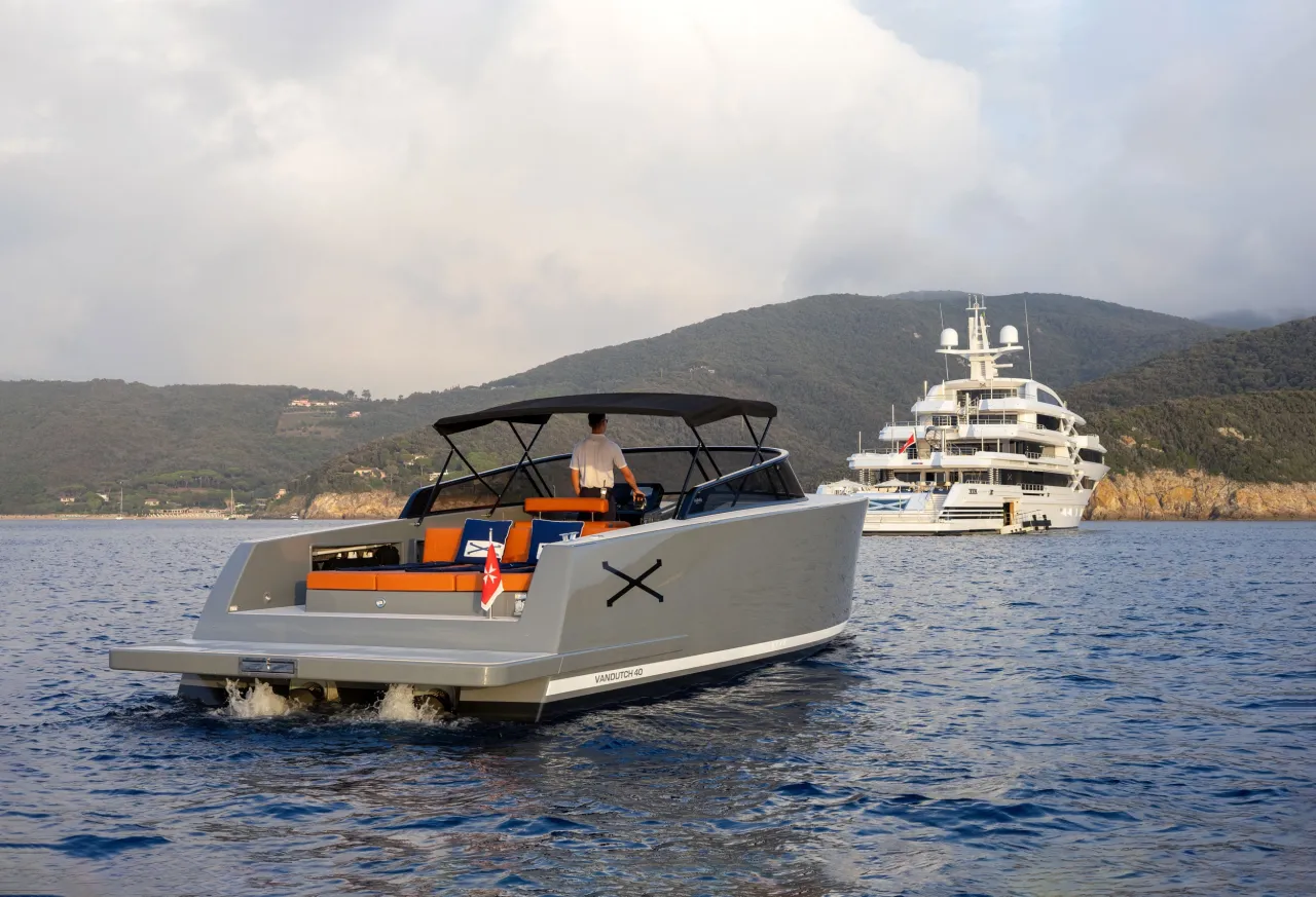 Project X carries four custom tenders, including a 12.48m VanDutch, a classic 9m mahogany Pedrazzini, a high-performance 6.25m Whitmarsh RIB, and an 8.5m beach lander.