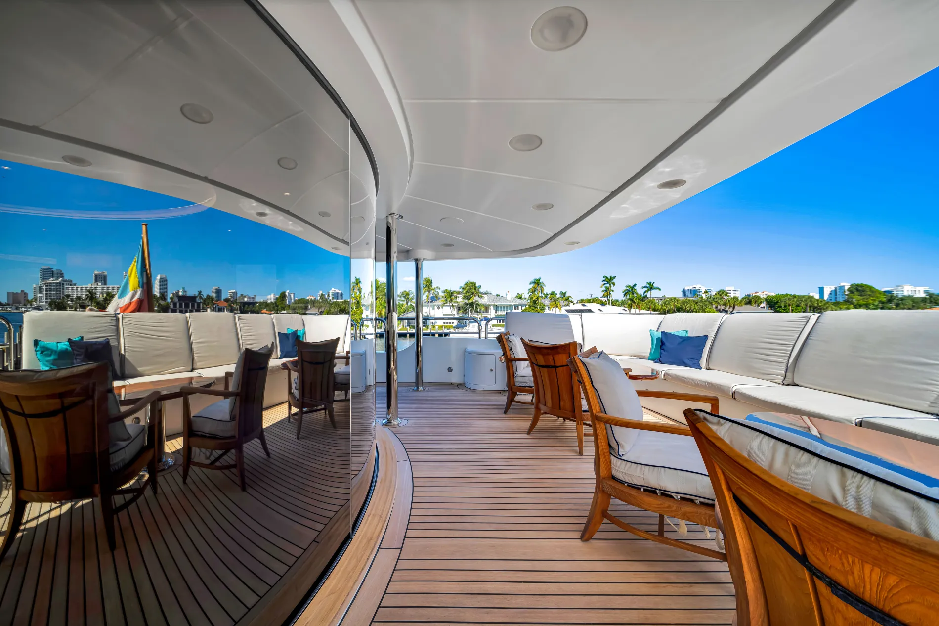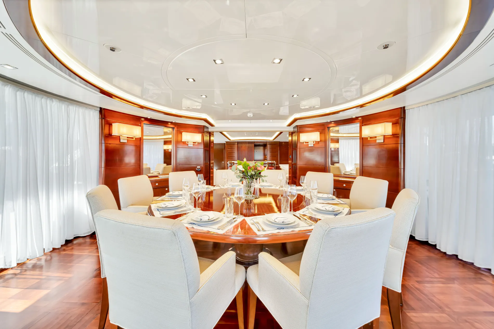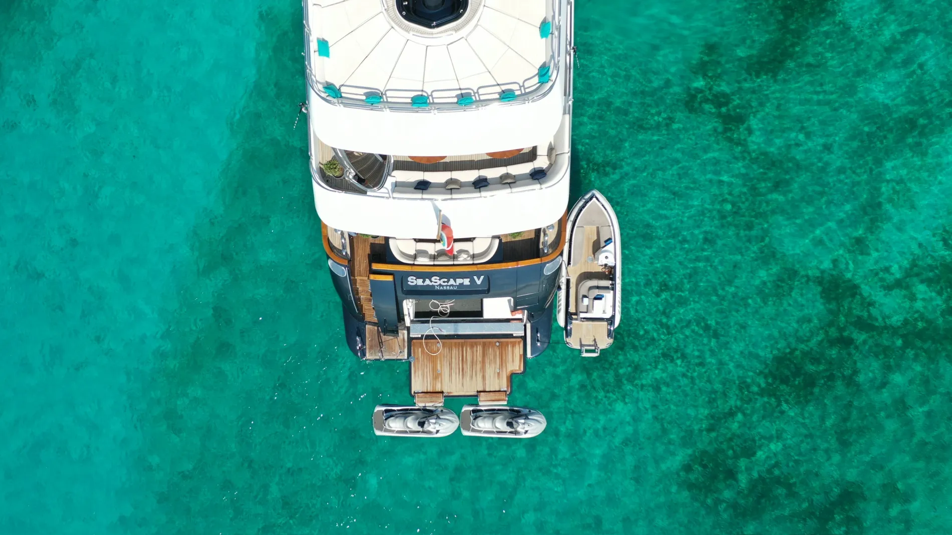 Seascape V is a 44-metre Benetti Vision that combines generous volume with thoughtful design. Designed by Stefano Righini with interiors by François Zuretti, she reflects Benetti’s signature craftsmanship while introducing features that distinguish her from others in the series — among them a stately master suite and indoor-outdoor dining room.