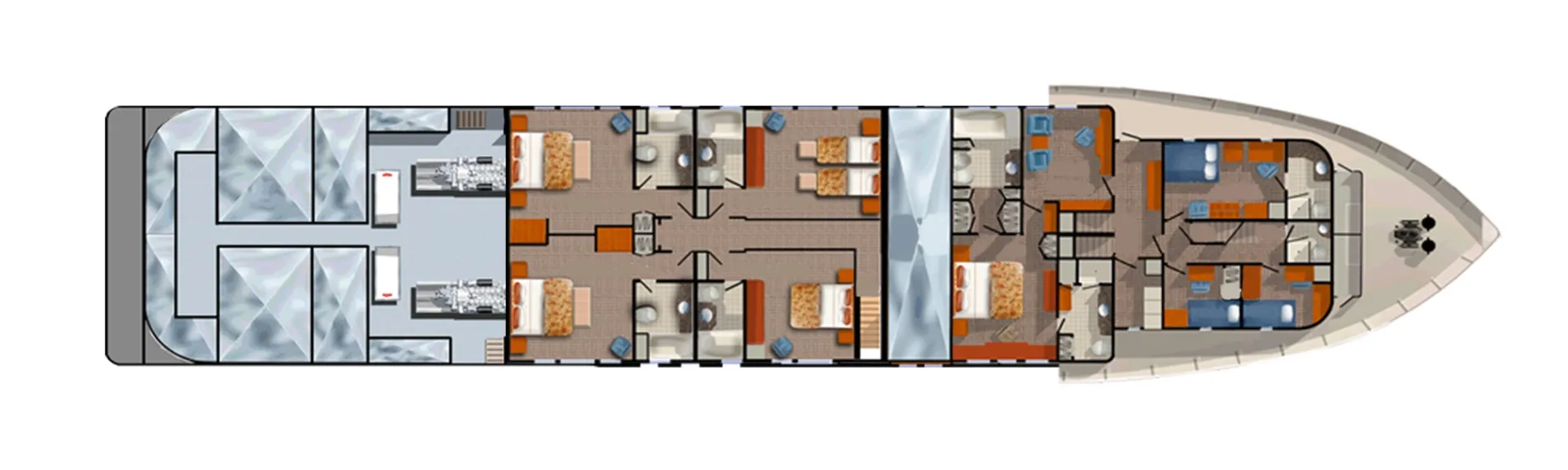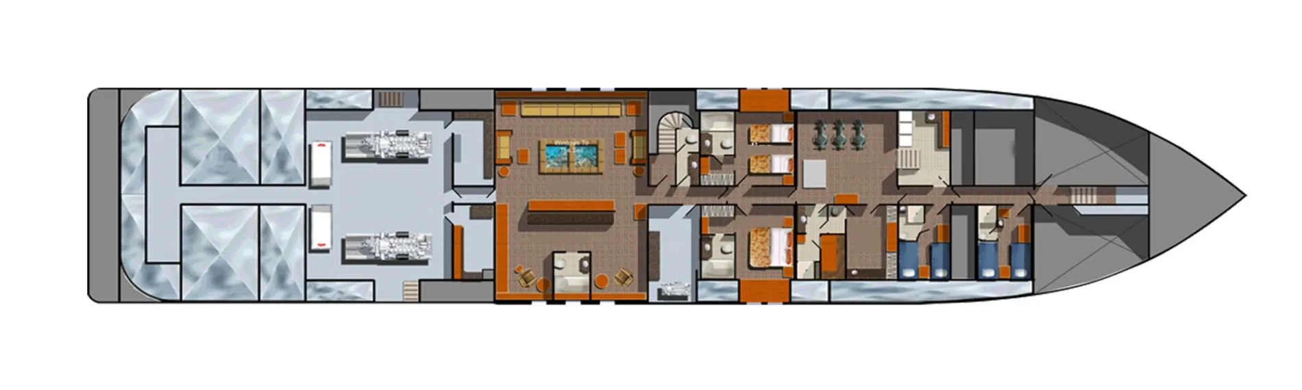 Fuel consumption both main engines at 10 knots about 365 litres per hour (74 gal / h)