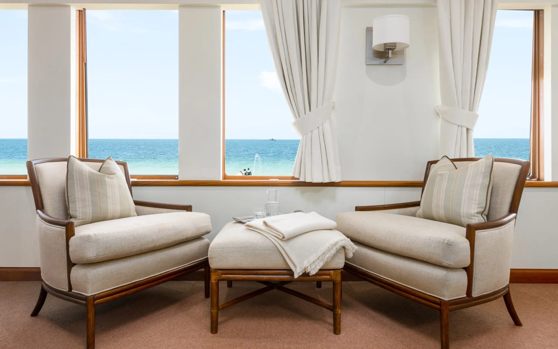 Suri offers a warm and homely retreat after a day out on the water, with light-filled lounges and relaxed spaces.