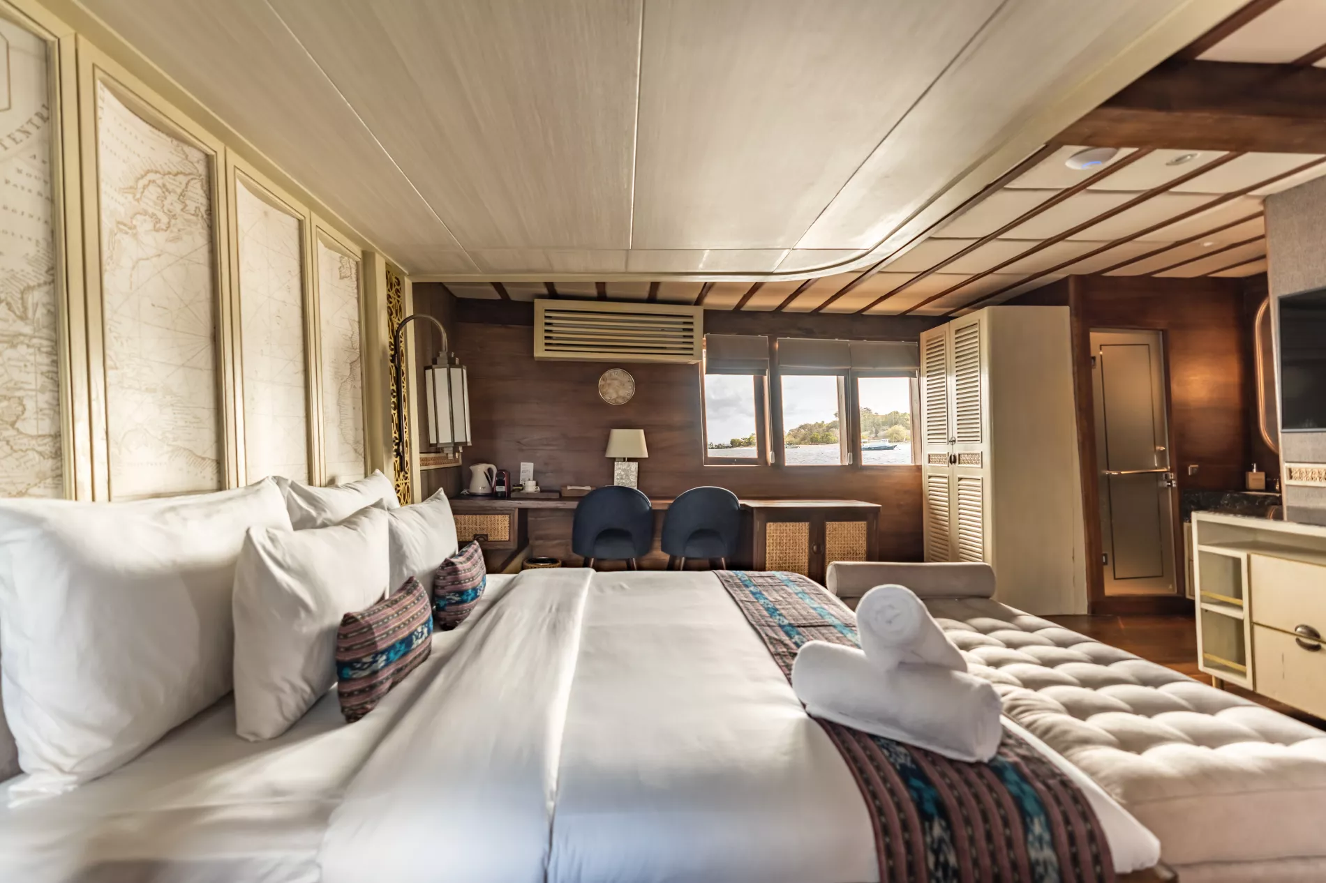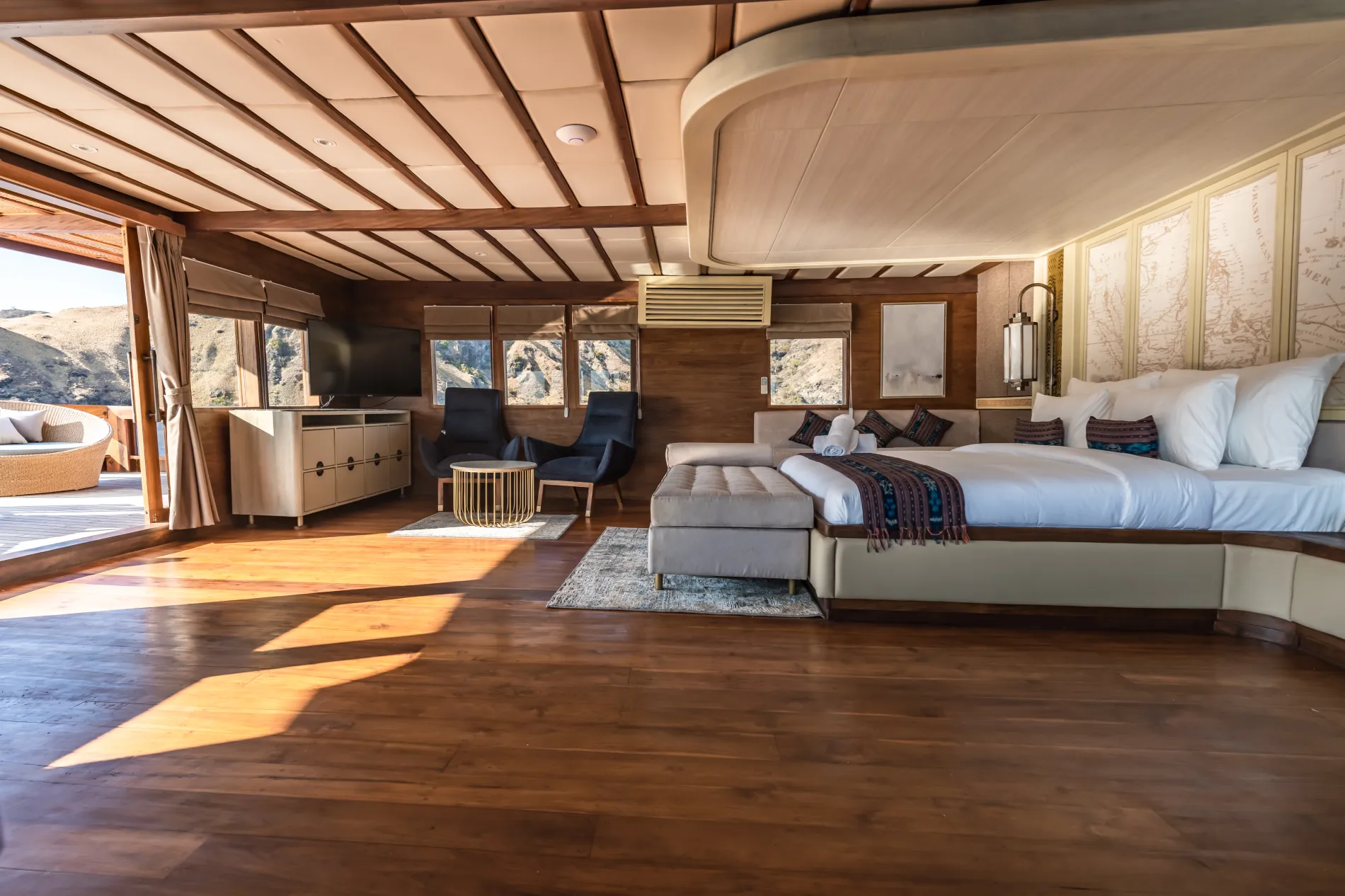 The Maj Oceanic is a gateway into another world. This Phinisi brings a luxurious, modern twist to traditional Indonesian craftsmanship. Expect premium suites and service, cruising through the dramatic seascapes of the world’s largest island nation. Hike volcanic peaks, encounter Komodo dragons, and dive among vibrant reefs teeming with marine life.