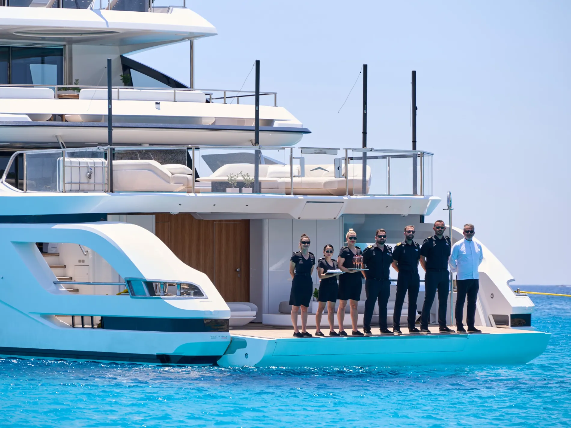 With space for 12 guests and a layout that shapes itself around your group, VOLO MARE is ready for families, couples, or friends. The guest list may change, but effortless living aboard VOLO MARE never does.